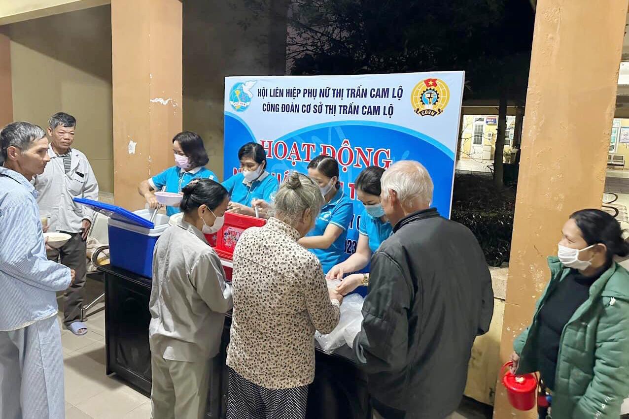 Thiết thực lập thành tích chào mừng kỷ niệm 113 năm ngày Quốc tế phụ nữ, sáng nay 23/2/2023, Hội Liên hiệp phụ nữ thị trấn Cam Lộ phối hợp với Công đoàn cơ sở thị trấn tổ chức chương trình “Nồi cháo tình thương” giúp bệnh nhân có hoàn cảnh khó khăn đang điều trị tại Trung tâm y tế huyện Cam Lộ.