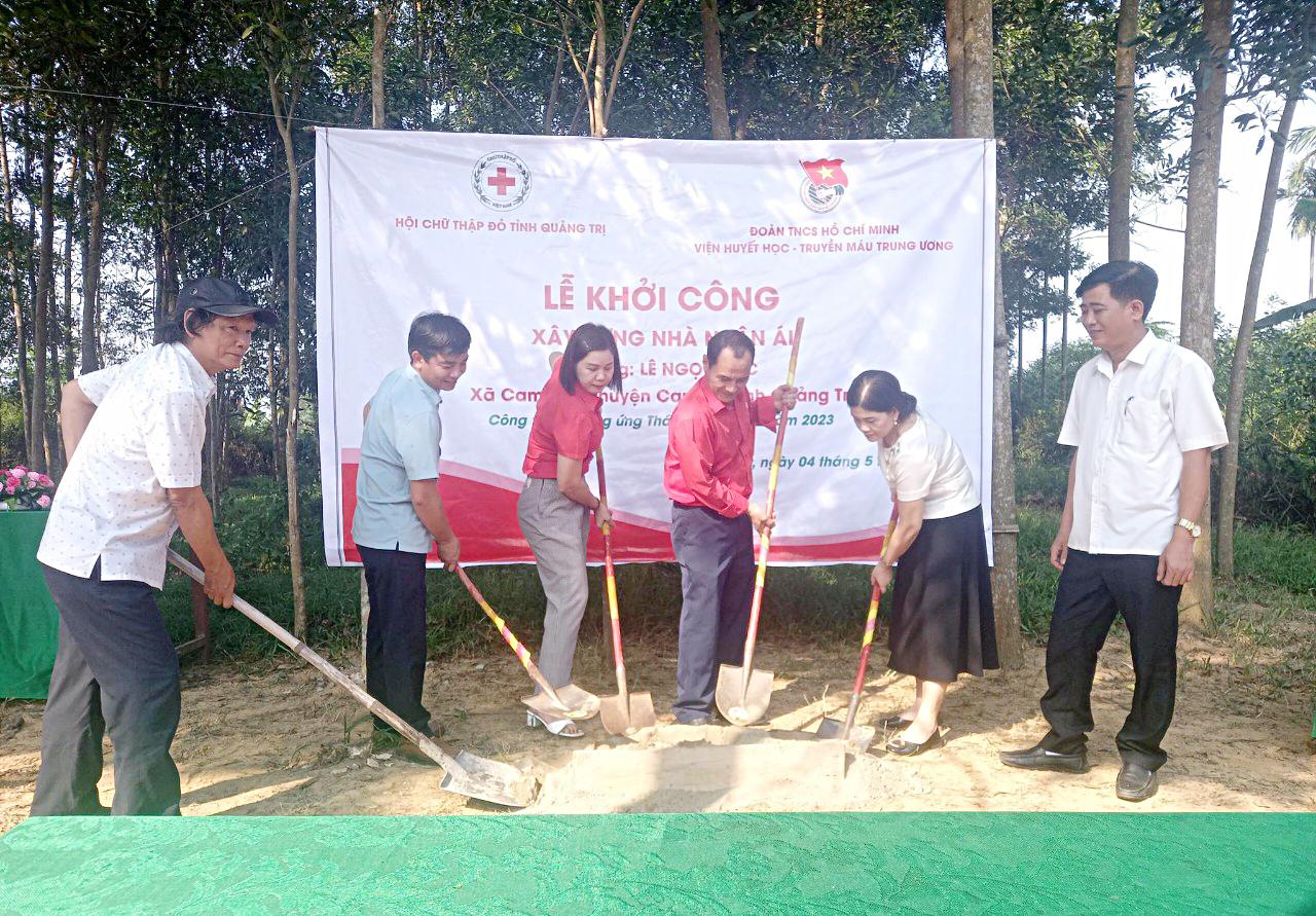 Sáng nay 4/5, Hội Chữ thập đỏ tỉnh Quảng Trị và Đoàn TNCS Hồ Chí Minh Viện Huyết học-Truyền máu Trung ương phối hợp với chính quyền địa phương tổ chức lễ khởi công xây nhà nhân ái cho ông Lê Ngọc Lộc, ở thôn Lâm Lang 1, xã Cam Thủy, huyện Cam Lộ.