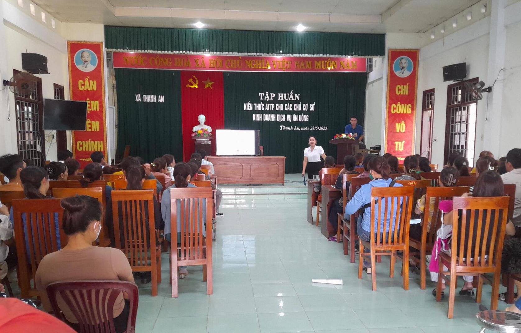 Ngày 23/5/2023, Trung tâm Y tế huyện Cam Lộ phối hợp với Ban Chỉ đạo an toàn thực phẩm (ATTP) xã Thanh An tổ chức tập huấn kiến thức an toàn thực phẩm cho các chủ cơ sở kinh doanh dịch vụ ăn uống trên địa bàn xã.