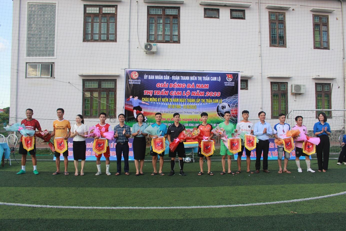 Lãnh đạo huyện và thị trấn Cam Lộ tặng hoa , cờ lưu niệm cho các đội bóng