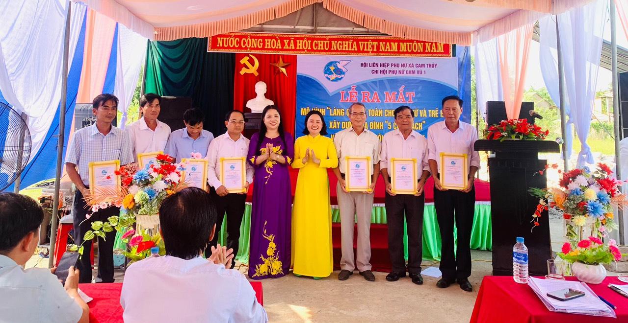 Ngày 20/8/2023, Hội LHPN xã Cam Thủy tổ chức lễ ra mắt mô hình “Làng quê an toàn cho phụ nữ và trẻ em”; xây dựng gia đình “5 có, 3 sạch” và công nhận 7 hội viên danh dự tại Chi hội Cam Vũ 1.