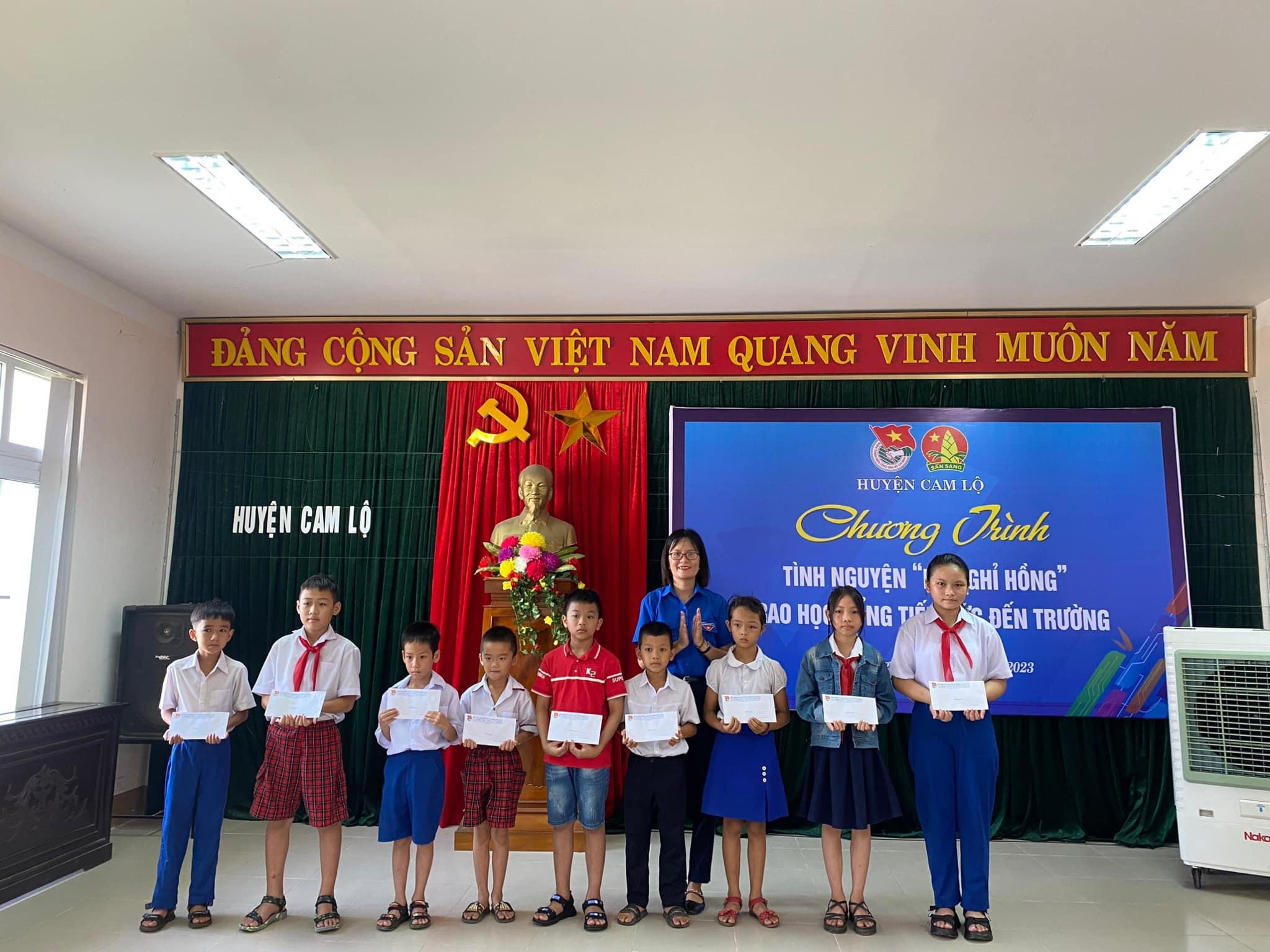 Vừa qua, Huyện đoàn - Hội đồng đội huyện Cam Lộ đã tổ chức trao học bổng tiếp sức đến trường cho các em học sinh có hoàn cảnh khó khăn trên địa bàn huyện.