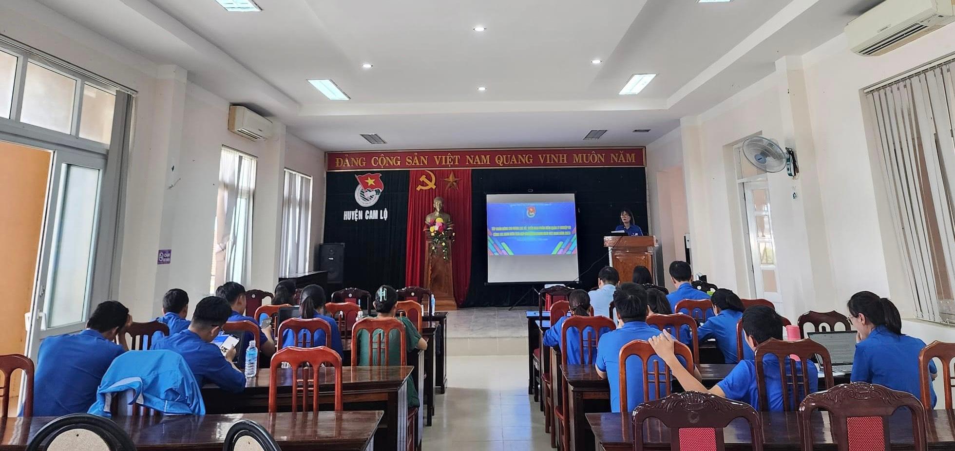 Nhằm đồng bộ triển khai thực hiện phần mềm quản lý đoàn viên và ứng dụng Thanh niên Việt Nam tại cơ sở, hưởng ứng năm chuyển đổi số, ngày 23/8/2023, BTV Huyện đoàn Cam Lộ tổ chức tập huấn nâng cao năng lực số, triển khai phần mềm quản lý nghiệp vụ công tác đoàn viên tích hợp với ứng dụng Thanh niên Việt Nam năm 2023 theo hình thức trực tiếp kết hợp trực tuyến.