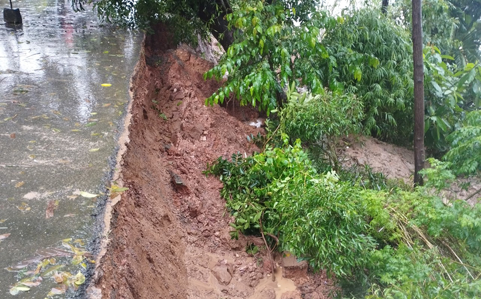 Điểm sạt lở ăn sâu vào đường nhựa gây nguy hiểm cho người và phương tiện qua lại