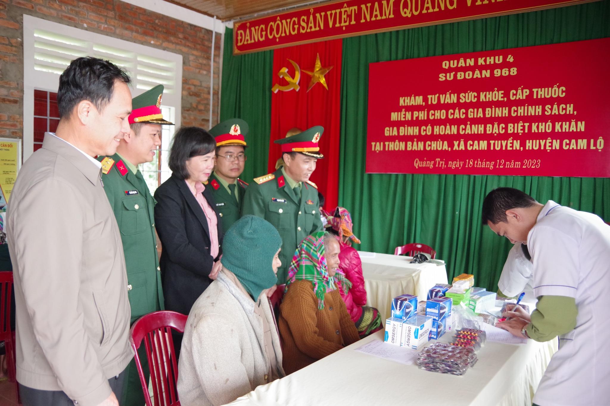 Chào mừng kỷ niệm 79 năm ngày thành lập Quân đội Nhân dân Việt Nam (22/12/1944 - 22/12/2023) và 34 năm Ngày hội quốc phòng toàn dân, ngày 18/12, đoàn cán bộ y, bác sĩ Tiểu đoàn 24 Quân y, Sư đoàn 968 đã tổ chức khám bệnh, tư vấn, chăm sóc sức khỏe cho người dân Bản Chùa, xã Cam Tuyền.