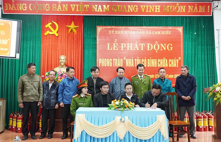 Tại buổi lễ, xã Cam Hiếu đã phát động phong trào “Nhà tôi có bình chữa cháy” trong toàn thể cán bộ, công chức, người lao động và các hộ gia đình trên địa bàn. Đồng thời, tổ chức ký cam kết về việc thực hiện tốt công tác PCCC&CNCH đối với các thôn trên địa bàn xã.