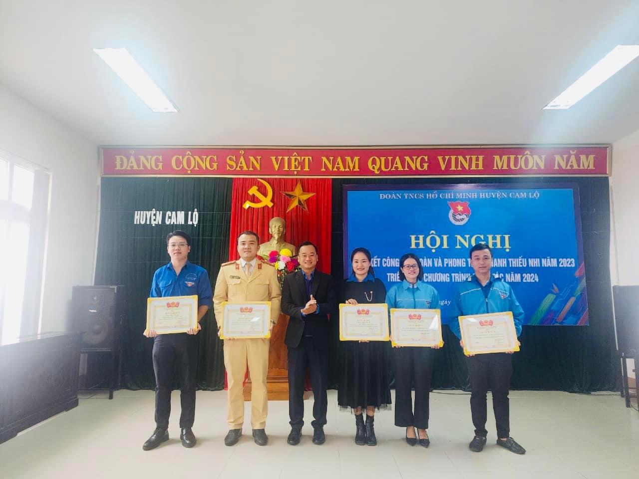 Tại hội nghị Tỉnh đoàn đã trao tặng Bằng khen cho 2 tập thể, 3 cá nhân; UB Hội LHTN Việt Nam tỉnh tặng Bằng khen cho 1 tập thể, 1 cá nhân có thành tích xuất sắc trong công tác Đoàn và phong trào thanh thiếu nhi năm 2023; UBND huyện tặng giấy khen cho 3 tập thể, 4 cá nhân; BCH Huyện đoàn tặng giấy khen cho 5 tập thể và 6 cá nhân có nhiều thành tích trong năm 2023.