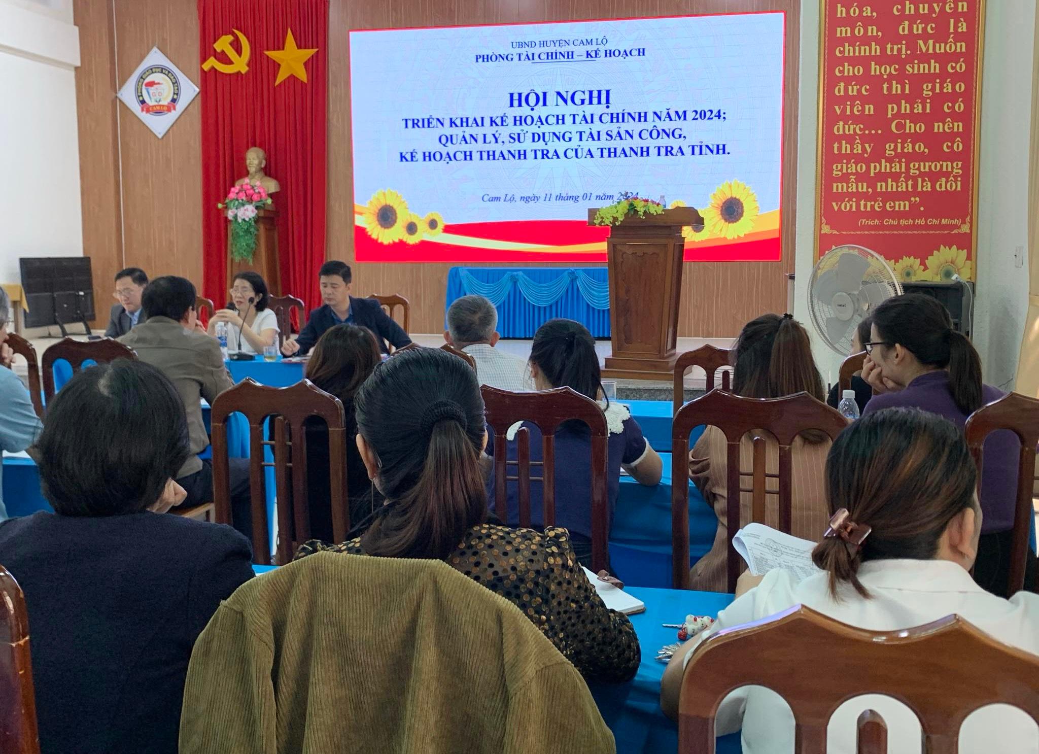 Ngày 11/01/2024, Phòng Tài chính – Kế hoạch huyện Cam Lộ tổ chức hội nghị tập huấn triển khai kế hoạch tài chính năm 2024 và quản lý, sử dụng tài sản công, kế hoạch thanh tra của thanh tra tỉnh cho các đơn vị hành chính, sự nghiệp và hướng dẫn nghiệp vụ sử dụng phần mềm quản lý tài sản công.