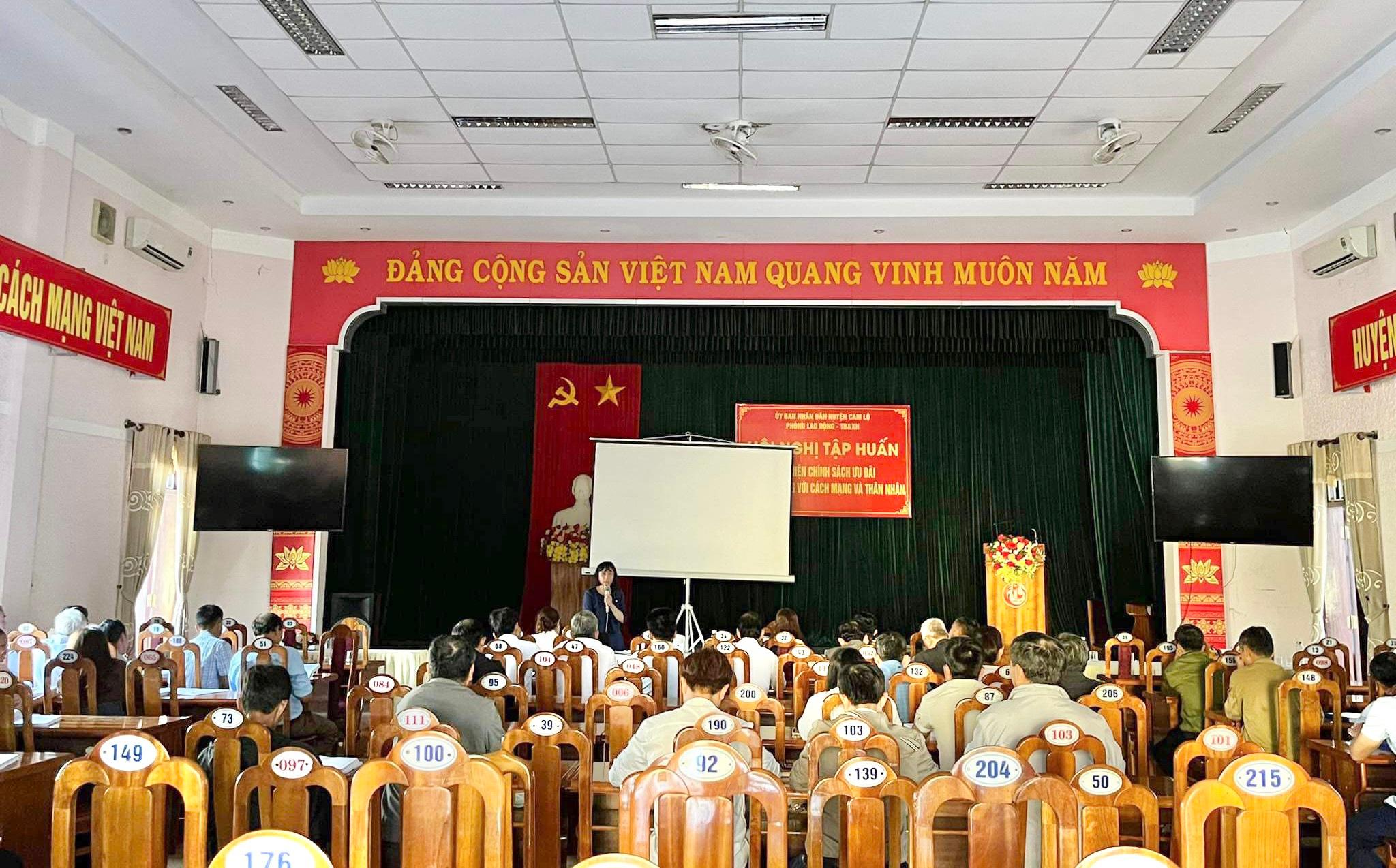 Phòng Lao động - Thương binh và Xã hội huyện Cam Lộ vừa tổ chức tập huấn công tác chính sách ưu đãi người có công với cách mạng và thân nhân cho đội ngũ cán bộ làm công tác lao động- thương binh và xã hội các xã, thị trấn.