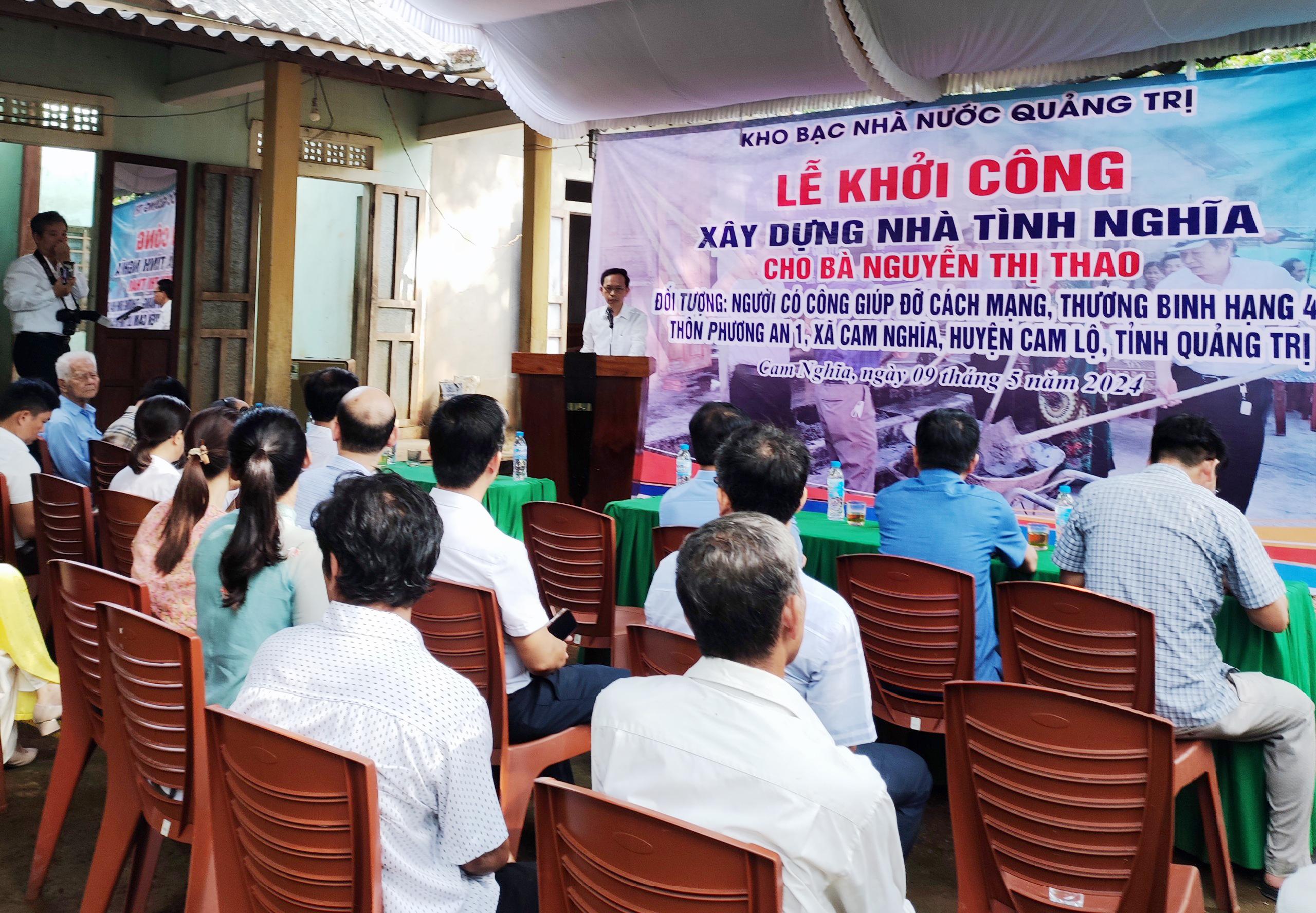 Sáng ngày 9/5/2024, Kho bạc nhà nước Quảng Trị phối hợp với chính quyền địa phương tổ chức lễ khởi công xây dựng nhà tình nghĩa cho bà Nguyễn Thị Thao, ở thôn Phương An 1, xã Cam Nghĩa, huyện Cam Lộ.