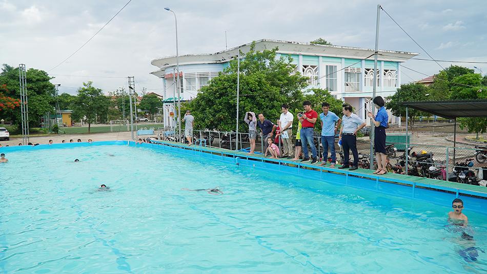 Các em tham gia học bơi tại Bể bơi trung tâm thị trấn Cam Lộ