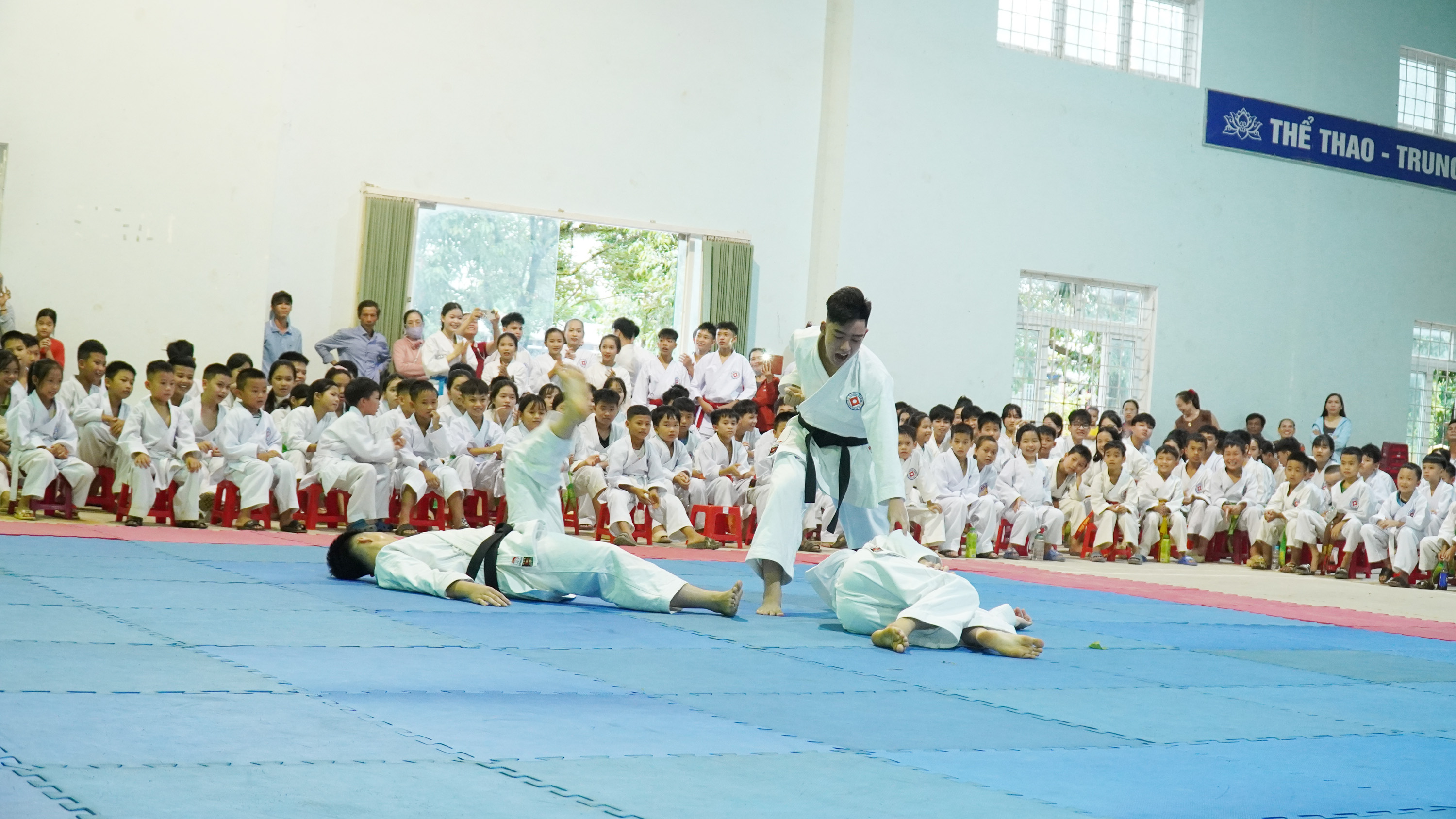 Tại lễ khai giảng, các võ sinh Võ đường Nghĩa Dũng Karate-Do Cam Lộ đã biểu diễn các bài quyền cá nhân, bài quyền đồng đội, công phá gạch, đấu luyện, các tiết mục tự vệ cận chiến… tạo không khí sôi nổi, phấn khởi và khích lệ tinh thần tập luyện của các võ sinh.