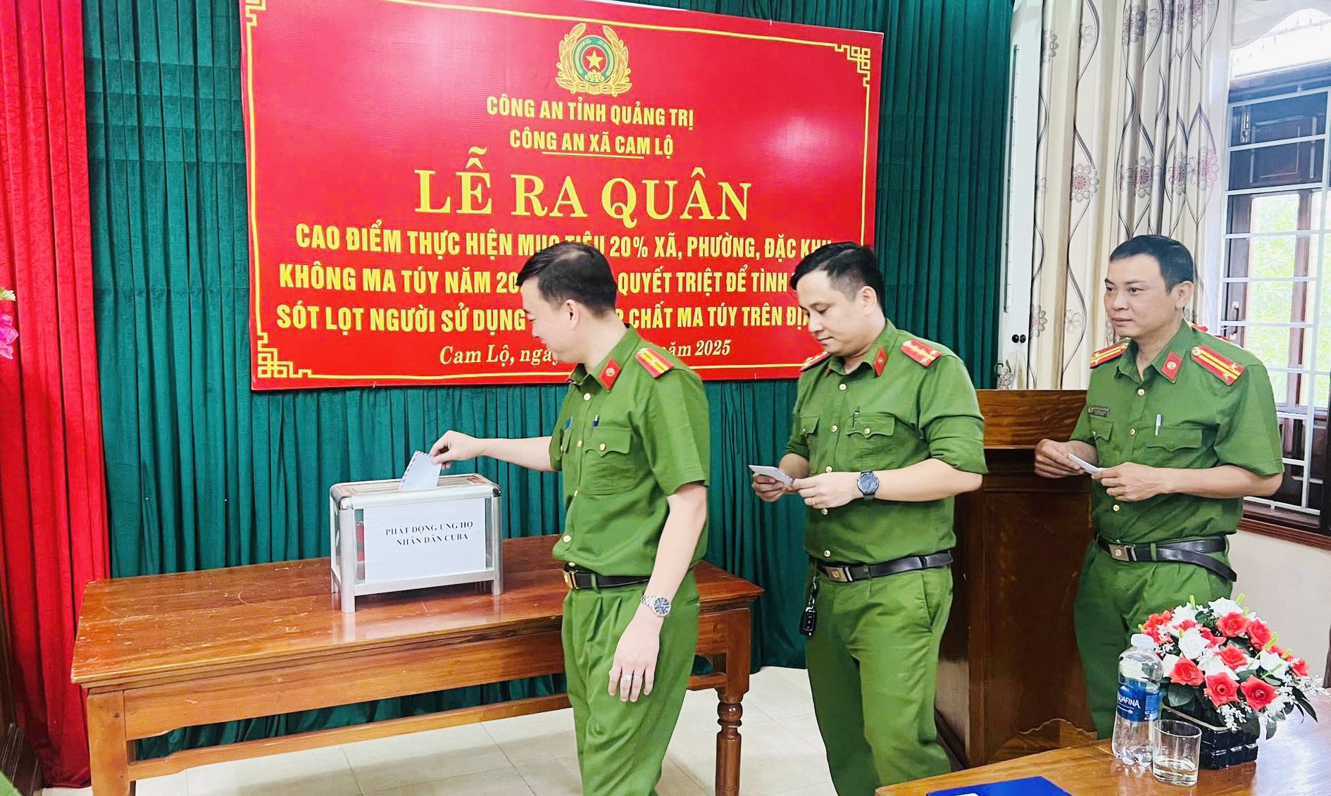 Lực lượng Công an xã Cam Lộ ủng hộ nhân dân Cuba