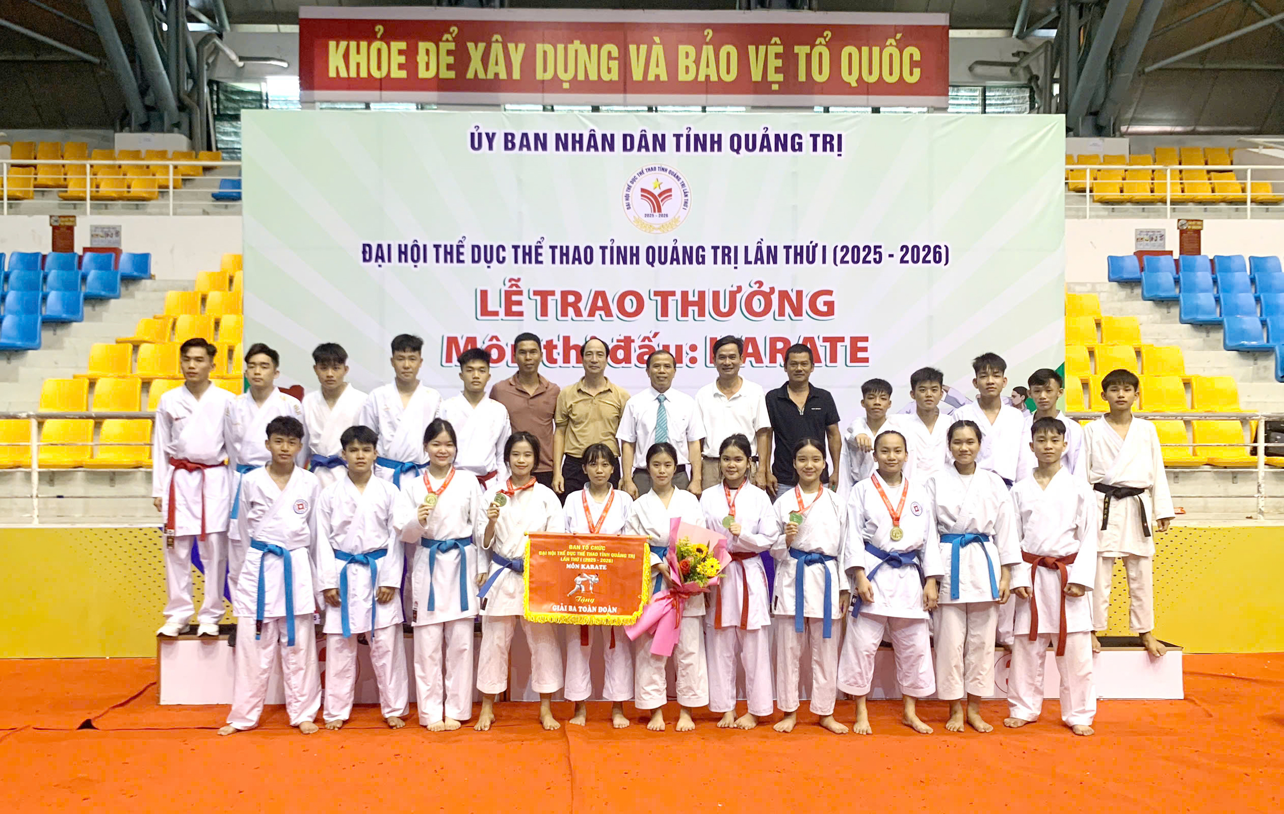 Sau 4 ngày tranh tài sôi nổi tại Nhà thi đấu đa năng tỉnh Quảng Trị, môn Karate – môn thi đấu đầu tiên trong khuôn khổ Đại hội TDTT tỉnh Quảng Trị lần thứ I, giai đoạn 2025–2026 – đã khép lại với nhiều dấu ấn đáng nhớ. Trong đó, đoàn vận động viên xã Cam Lộ đã xuất sắc giành vị trí thứ Ba toàn đoàn.