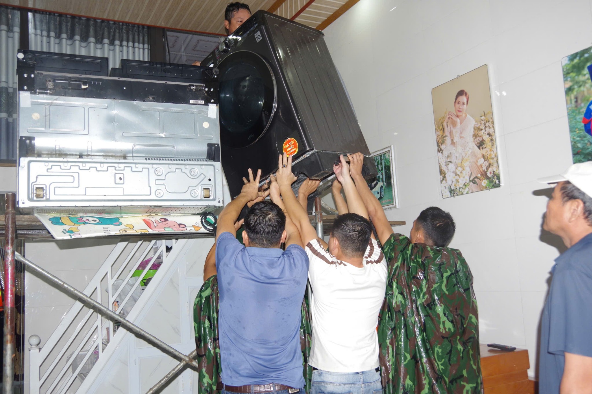Lực lượng Công an, Quân sự cùng cán bộ, chiến sĩ Trung đoàn 19 hỗ trợ người dân kê cao tài sản