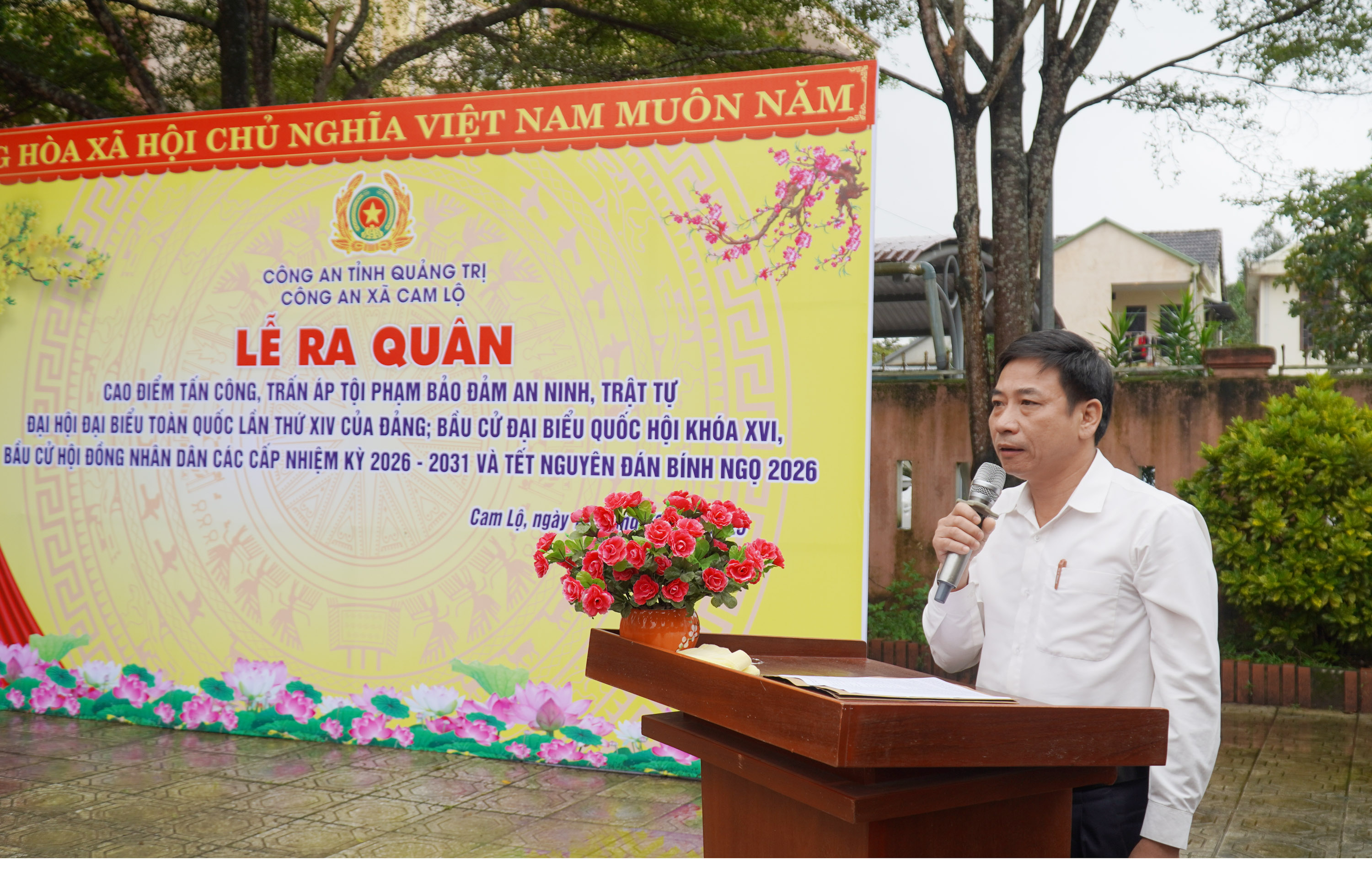 Sáng nay 12/12, Công an xã Cam Lộ tổ chức lễ ra quân tấn công, trấn áp tội phạm, bảo đảm an ninh trật tự trên địa bàn. Tham dự lễ có các đồng chí: Nguyễn Văn Ân, Phó Bí thư Đảng ủy, Chủ tịch UBND xã; Dương Thị Thương, UVBTV Đảng ủy, Chủ tịch UBMTTQ Việt Nam xã; Hoàng Thị Thu Nhạn, Ủy viên BTV Đảng ủy, Phó Chủ tịch HĐND xã.