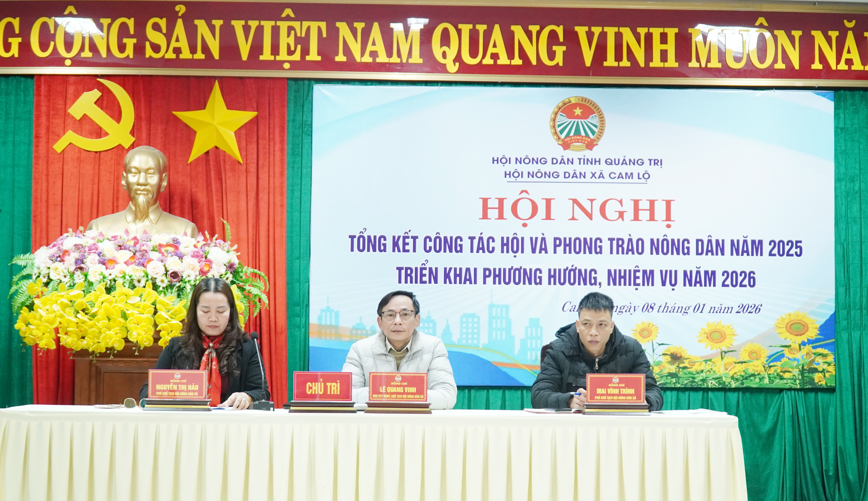 Năm 2026, Hội Nông dân xã Cam Lộ tập trung xây dựng tổ chức Hội trong sạch, vững mạnh; tiếp tục đổi mới công tác tuyên truyền, giáo dục chính trị tư tưởng, đẩy mạnh học tập và làm theo tư tưởng, đạo đức, phong cách Hồ Chí Minh gắn với các phong trào thi đua xây dựng nông thôn mới nâng cao, kiểu mẫu. Hội chú trọng củng cố tổ chức, nâng cao chất lượng hội viên; phát huy vai trò chủ thể của nông dân trong phát triển nông nghiệp hiện đại, sản xuất theo chuỗi giá trị, bảo vệ môi trường. Đồng thời đẩy mạnh hoạt động hỗ trợ vốn, đào tạo nghề, chuyển giao khoa học kỹ thuật, tham gia xây dựng Đảng, chính quyền, góp phần nâng cao đời sống nông dân.