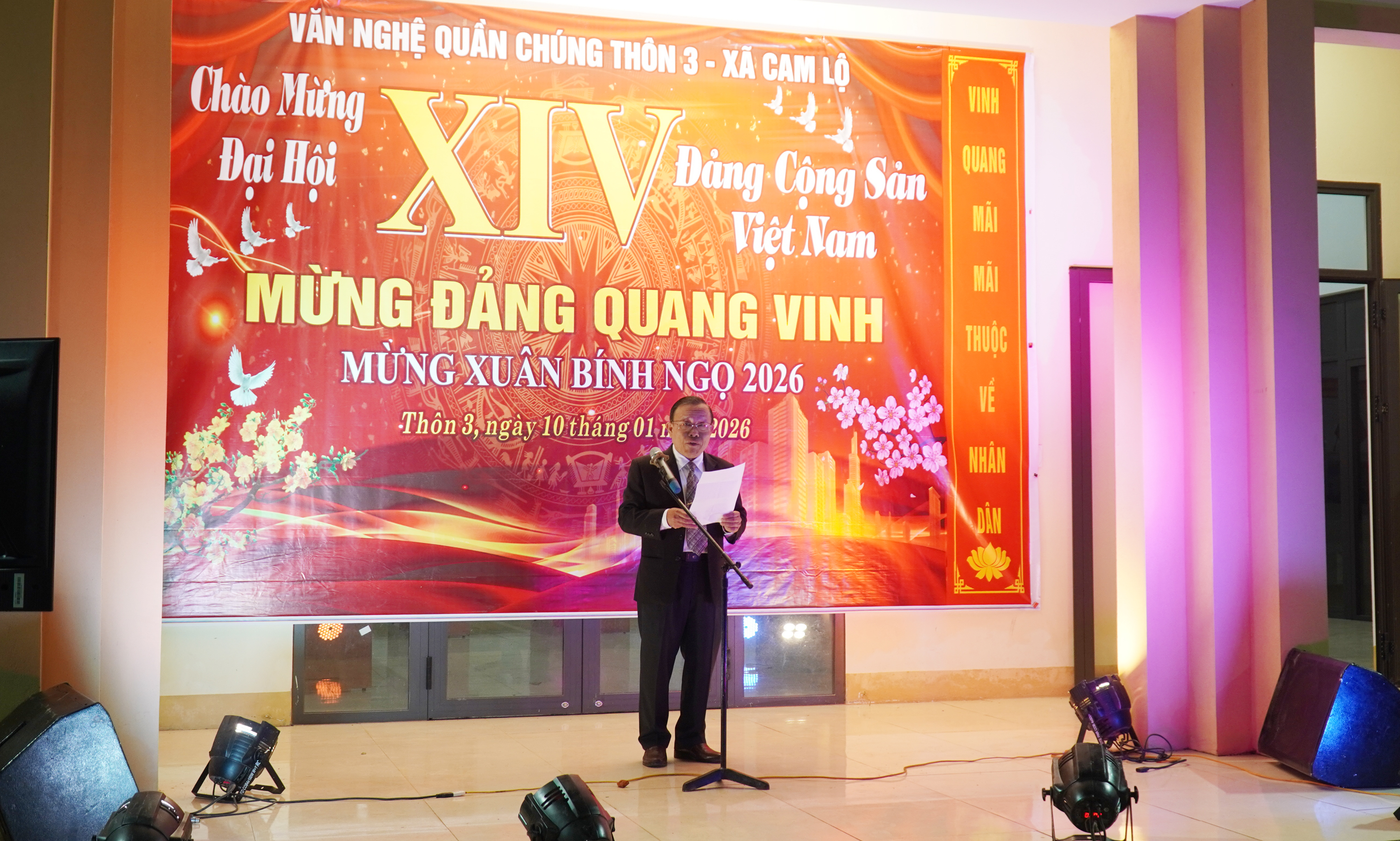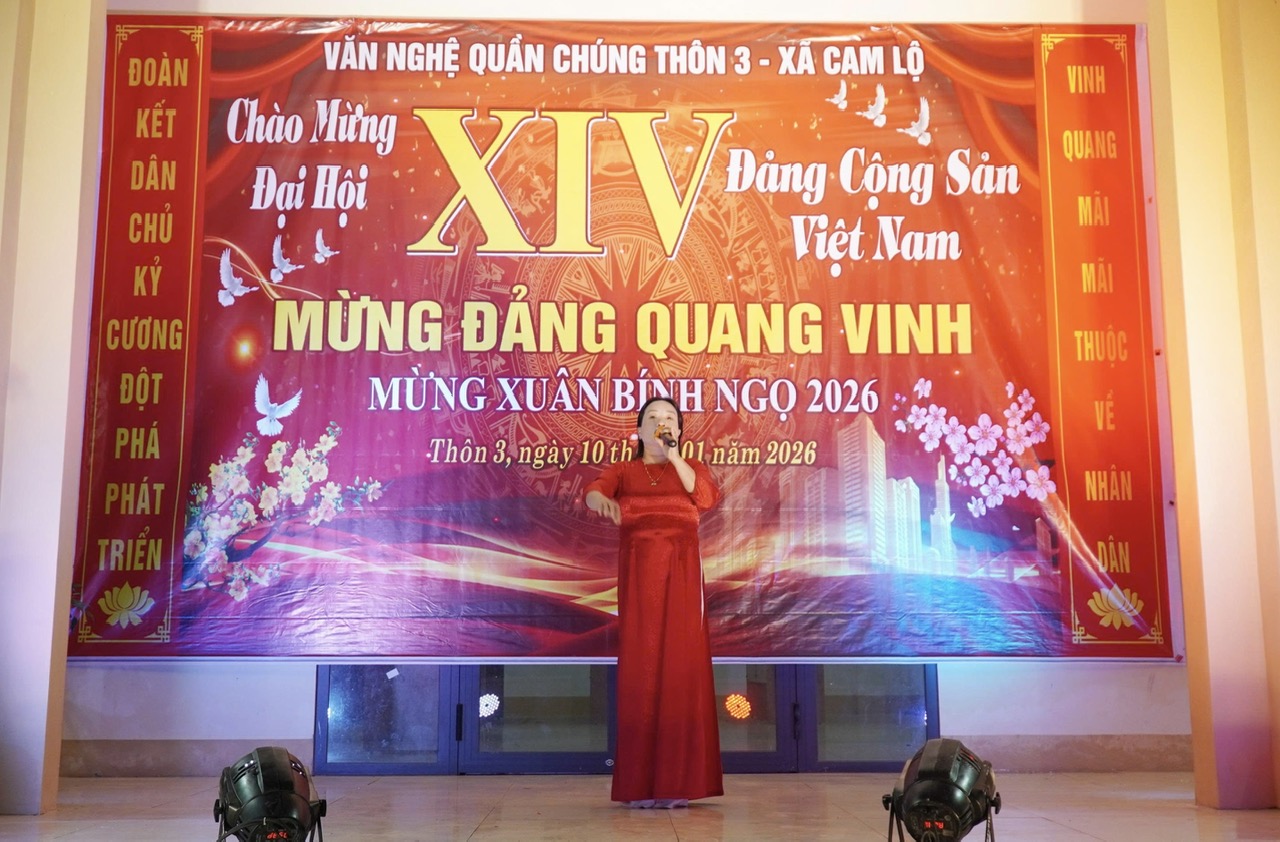 Tối 10/1, cấp ủy, Ban Điều hành và Ban Công tác Mặt trận thôn 3 tổ chức chương trình giao lưu văn nghệ quần chúng chào mừng Đại hội XIV của Đảng và hướng tới kỷ niệm 96 năm Ngày thành lập Đảng Cộng sản Việt Nam (3/2/1930 - 3/2/2026).
