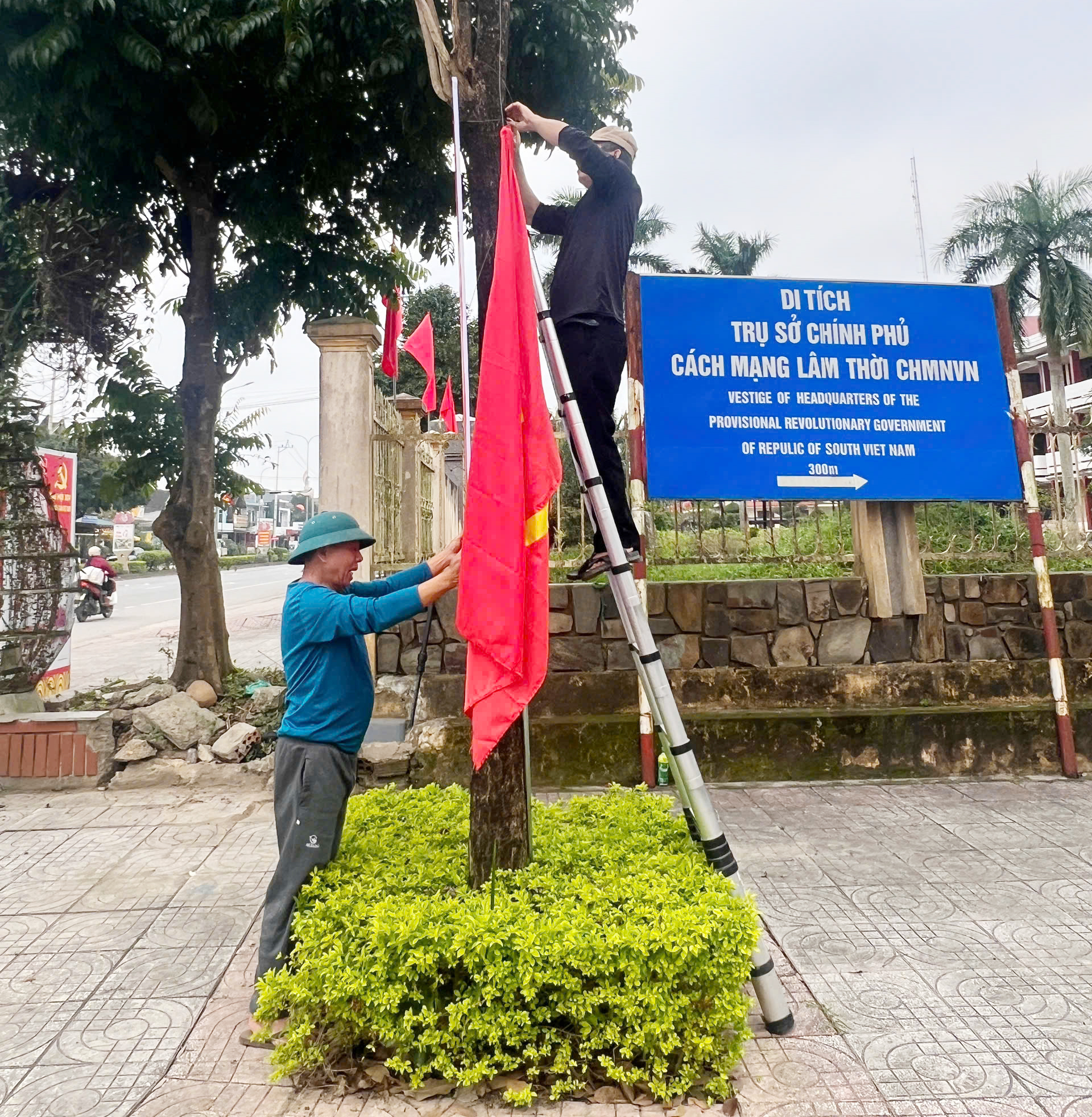 Trên khắp các tuyến đường, khu dân cư và trụ sở cơ quan, cờ Tổ quốc, cờ Đảng, băng rôn, pano cổ động được treo đồng loạt, tạo nên không gian chính trị trang nghiêm, tươi mới. Sắc đỏ rực rỡ cùng các khẩu hiệu tuyên truyền không chỉ làm đẹp cảnh quan mà còn khơi dậy niềm tự hào, tinh thần trách nhiệm của mỗi người dân đối với sự kiện trọng đại của đất nước.