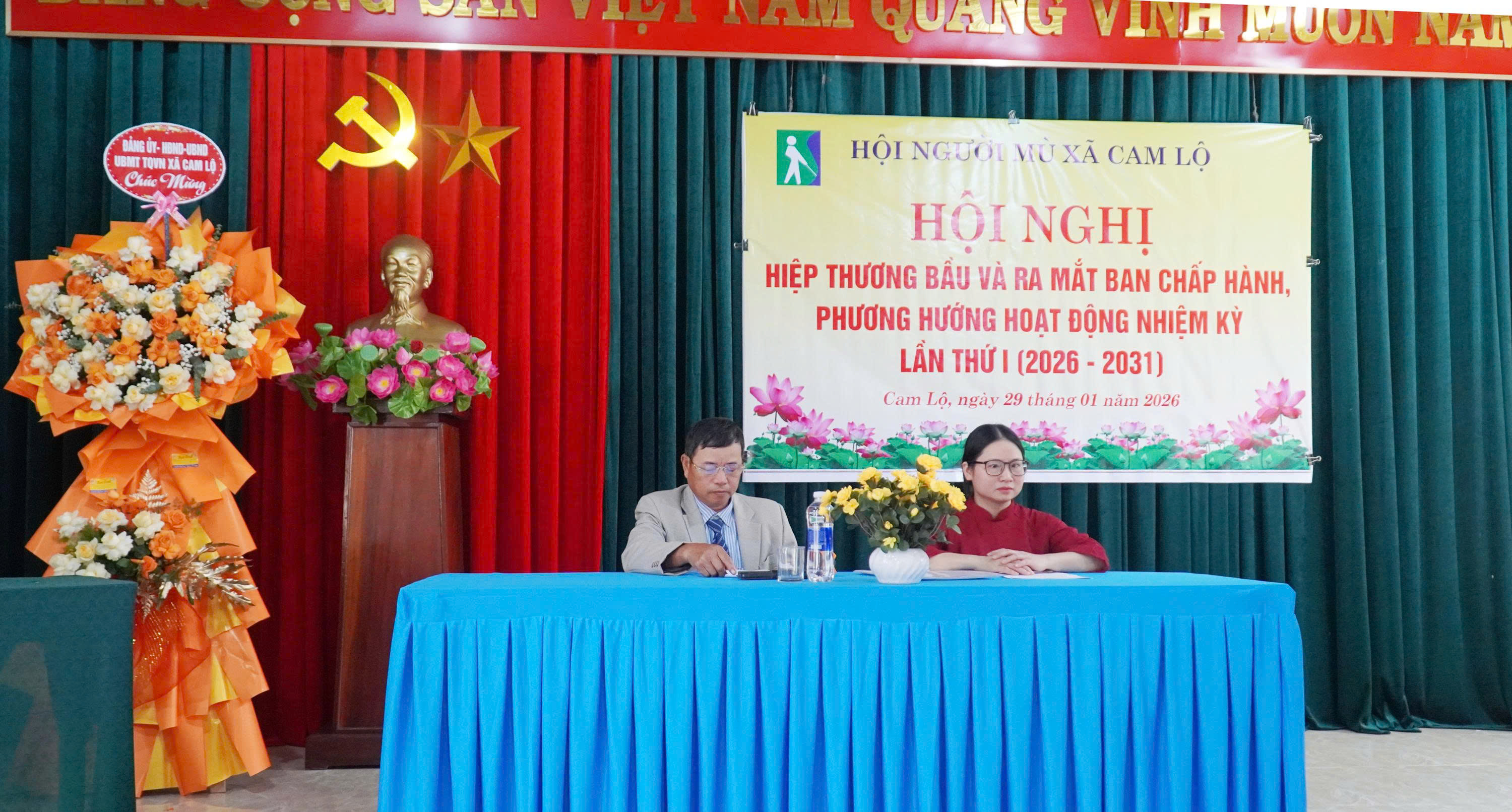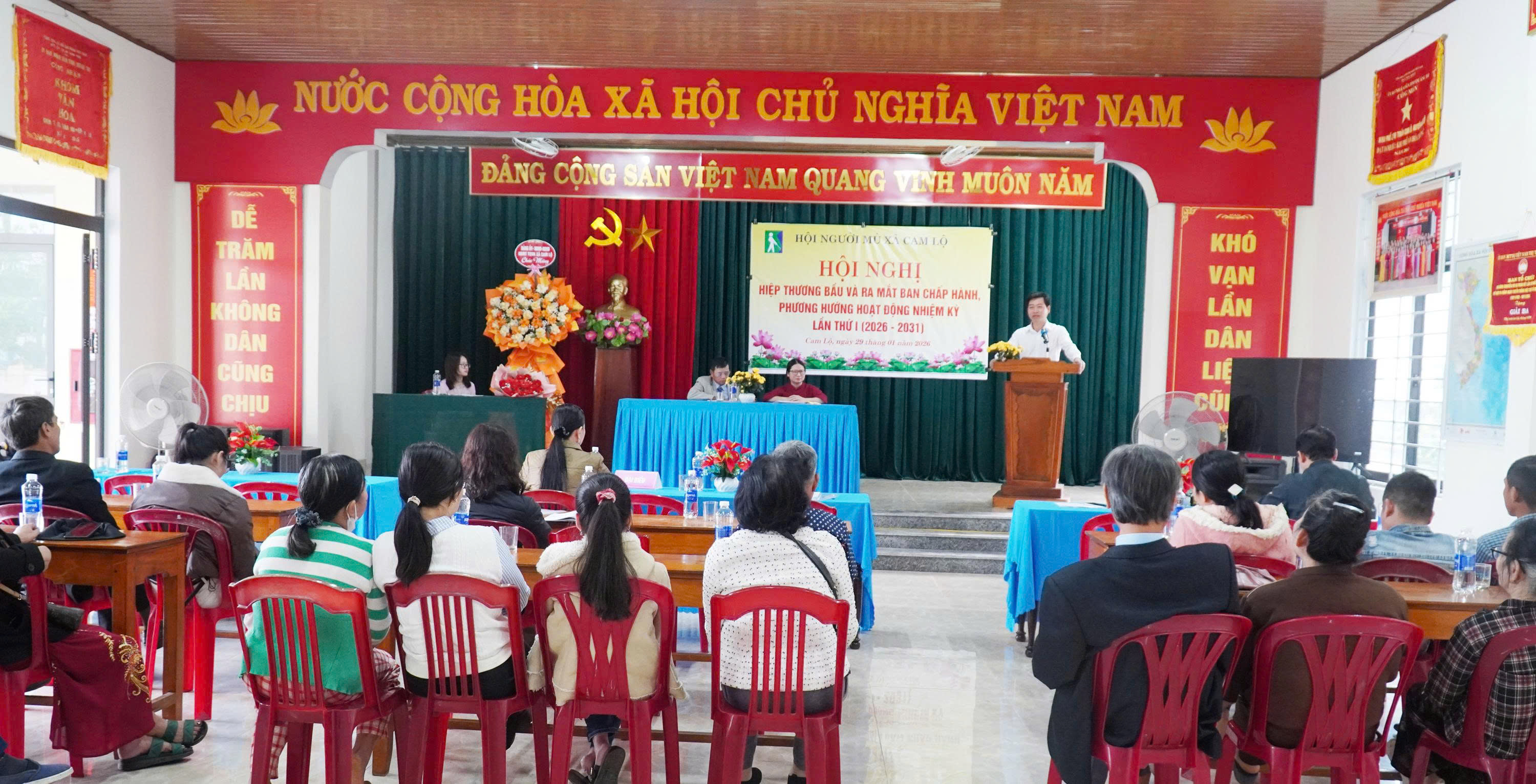 Ngày 29/1, Hội Người mù xã Cam Lộ tổ chức Hội nghị hiệp thương và ra mắt Ban Chấp hành Hội Người mù xã Cam Lộ khóa I, nhiệm kỳ 2026 - 2031. Tham dự có đồng chí Phan Thị Ngọc, Phó Chủ tịch Hội Người mù tỉnh. Về phía lãnh đạo địa phương có các đồng chí: Dương Thị Thương, UVBTV Đảng ủy, Chủ tịch Ủy ban MTTQ Việt Nam xã; Lê Anh Chương, UVBTV Đảng ủy, Phó Chủ tịch UBND xã cùng 20 đại biểu đại diện cho 98 hội viên người mù trên địa bàn xã.