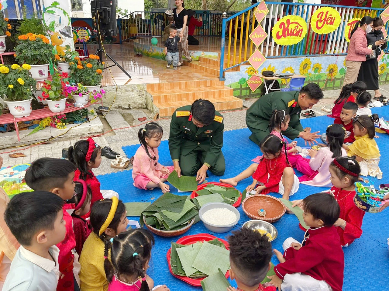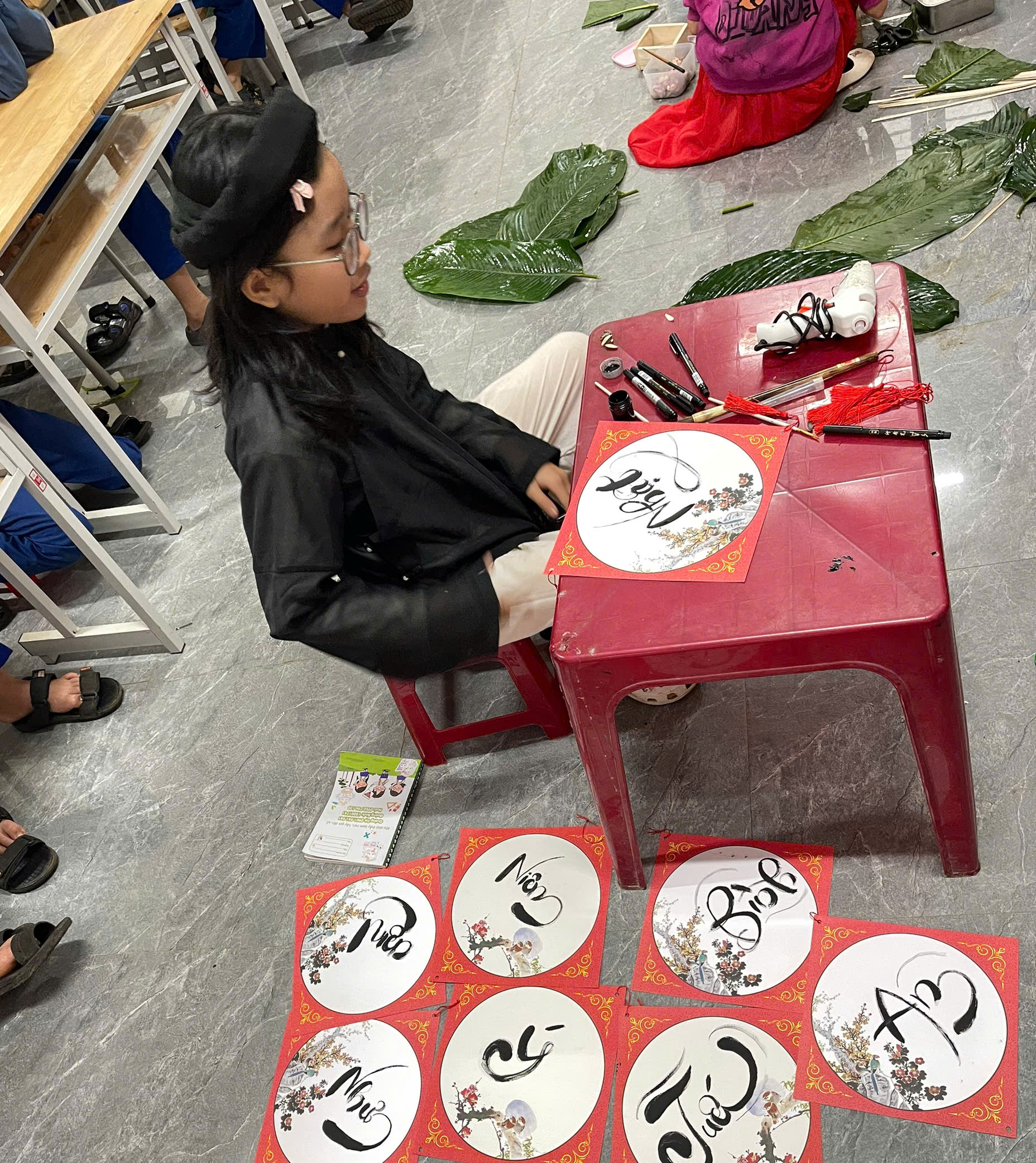 Trong chuỗi hoạt động trải nghiệm, các em được tham gia nhiều hoạt động vui chơi ý nghĩa như: gói bánh chưng, viết chữ thư pháp; cắm hoa, làm bánh lọc- món đặc sản của vùng quê Quảng Trị; giao lưu văn nghệ; tham gia các trò chơi dân gian...