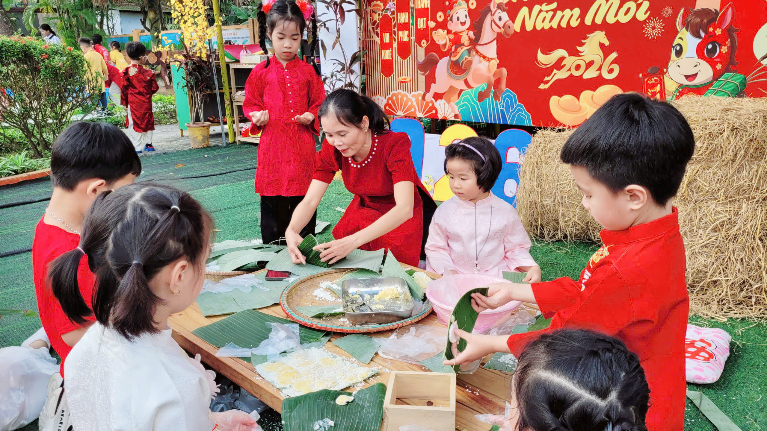 Mỗi góc trang trí không chỉ là điểm check-in rực rỡ mà còn giúp học sinh hiểu sâu sắc hơn về truyền thống dân tộc. Đặc biệt với học sinh mầm non và tiểu học, đây là những trải nghiệm sinh động, góp phần bồi đắp tình yêu quê hương, gia đình và ý thức gìn giữ bản sắc văn hóa.