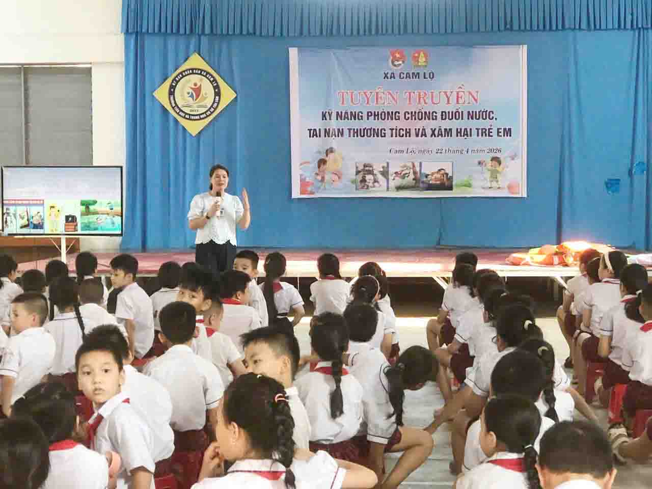 Nhằm phát huy vai trò của tổ chức Đoàn, Đội trong việc tổ chức các hoạt động góp phần hạn chế, giảm thiểu tối đa các trường hợp trẻ em bị đuối nước, tai nạn thương tích và xâm hại; đồng thời trang bị kiến thức, kỹ năng cần thiết cho thanh thiếu nhi, tạo môi trường vui chơi lành mạnh, bổ ích, vừa qua, Ban Thường vụ Đoàn xã Cam Lộ đã phối hợp với các trường học trên địa bàn tổ chức chương trình tuyên truyền kỹ năng phòng, chống tai nạn thương tích, đuối nước và xâm hại trẻ em năm 2026.