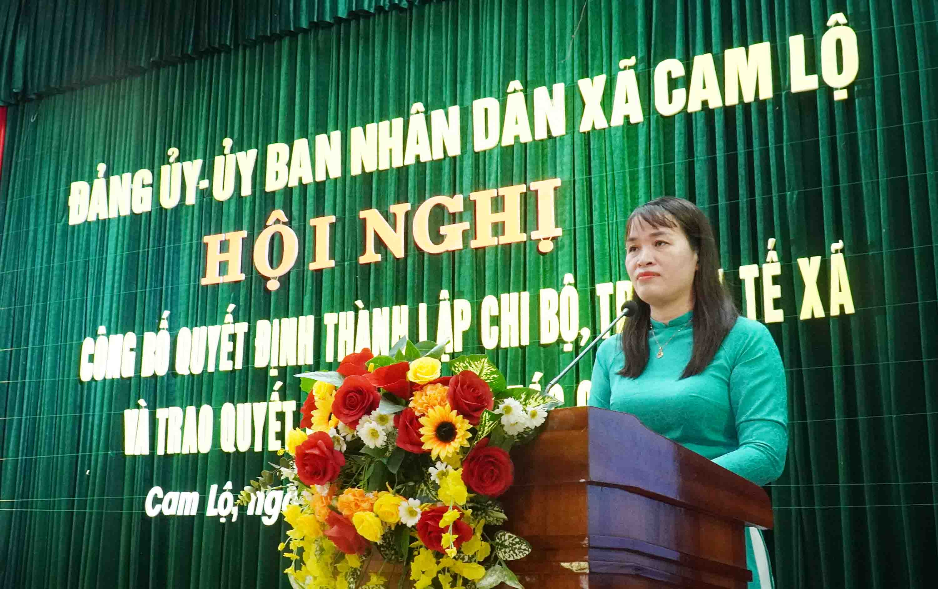 Tại hội nghị, lãnh đạo Phòng Văn hóa - Xã hội đã công bố Quyết định của UBND xã về việc thành lập Trạm Y tế xã Cam Lộ. Theo đó, Trạm Y tế xã là đơn vị sự nghiệp y tế công lập trực thuộc UBND xã, có tư cách pháp nhân, con dấu và tài khoản riêng. Trạm chịu sự quản lý toàn diện của UBND xã về tổ chức, nhân sự, tài chính; đồng thời chịu sự chỉ đạo, hướng dẫn về chuyên môn nghiệp vụ của Sở Y tế.