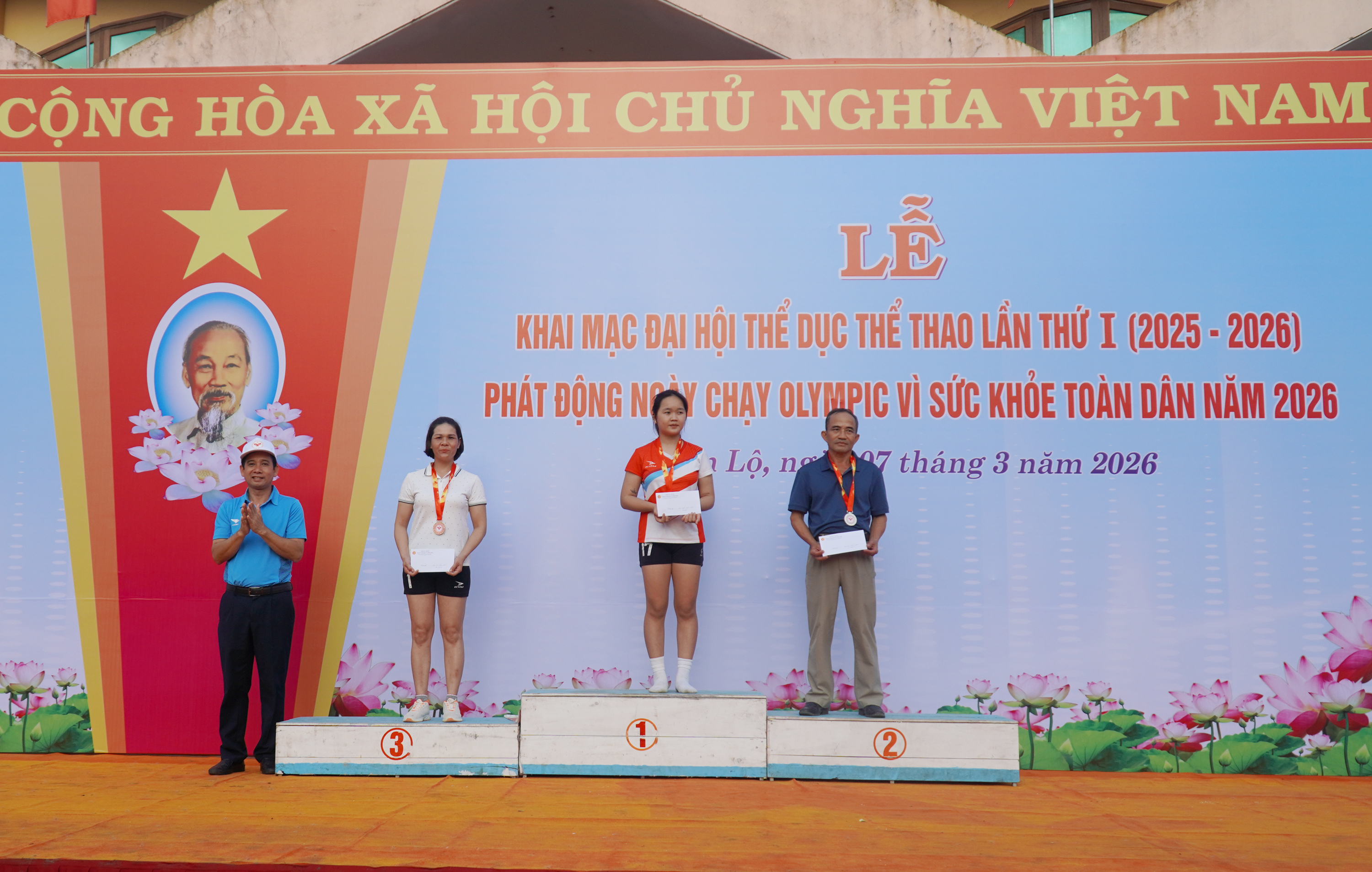 Đặc biệt, buổi lễ có sự tham gia của hơn 1.000 người, đại diện lực lượng vũ trang, các tổ chức chính trị - xã hội, cán bộ, giáo viên, học sinh, cùng đông đảo cán bộ và Nhân dân 42 thôn, tổ trọng tài và các vận động viên tham dự đại hội.