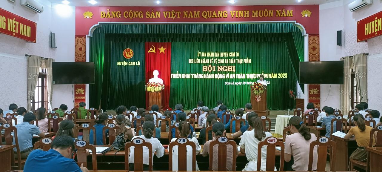 Ngày 20/4/2023, Ban Chỉ đạo liên ngành về vệ sinh an toàn thực phẩm huyện Cam Lộ tổ chức hội nghị triển khai Tháng hành động vì an toàn thực phẩm năm 2023, từ ngày 15/4 đến ngày 15/5 với chủ đề “Bảo đảm an ninh, ATTP trong tình hình mới”.