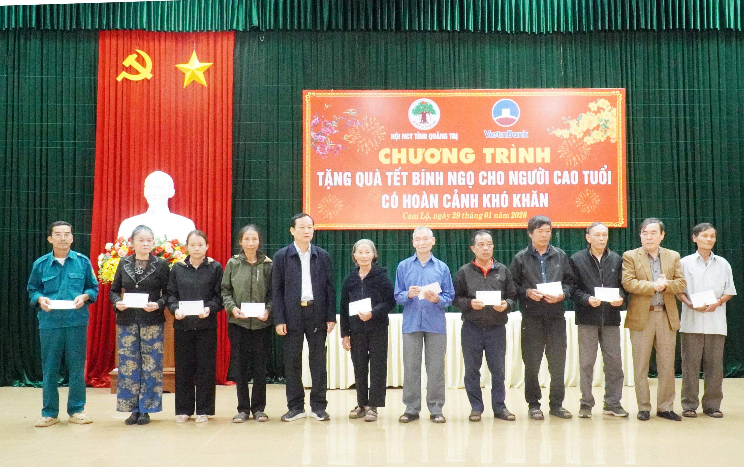 Sáng 29/1, Hội Người cao tuổi tỉnh phối hợp với ngân hàng VietinBank tổ chức chương trình trao quà Tết cho hội viên có hoàn cảnh khó khăn trên địa bàn xã Cam Lộ.