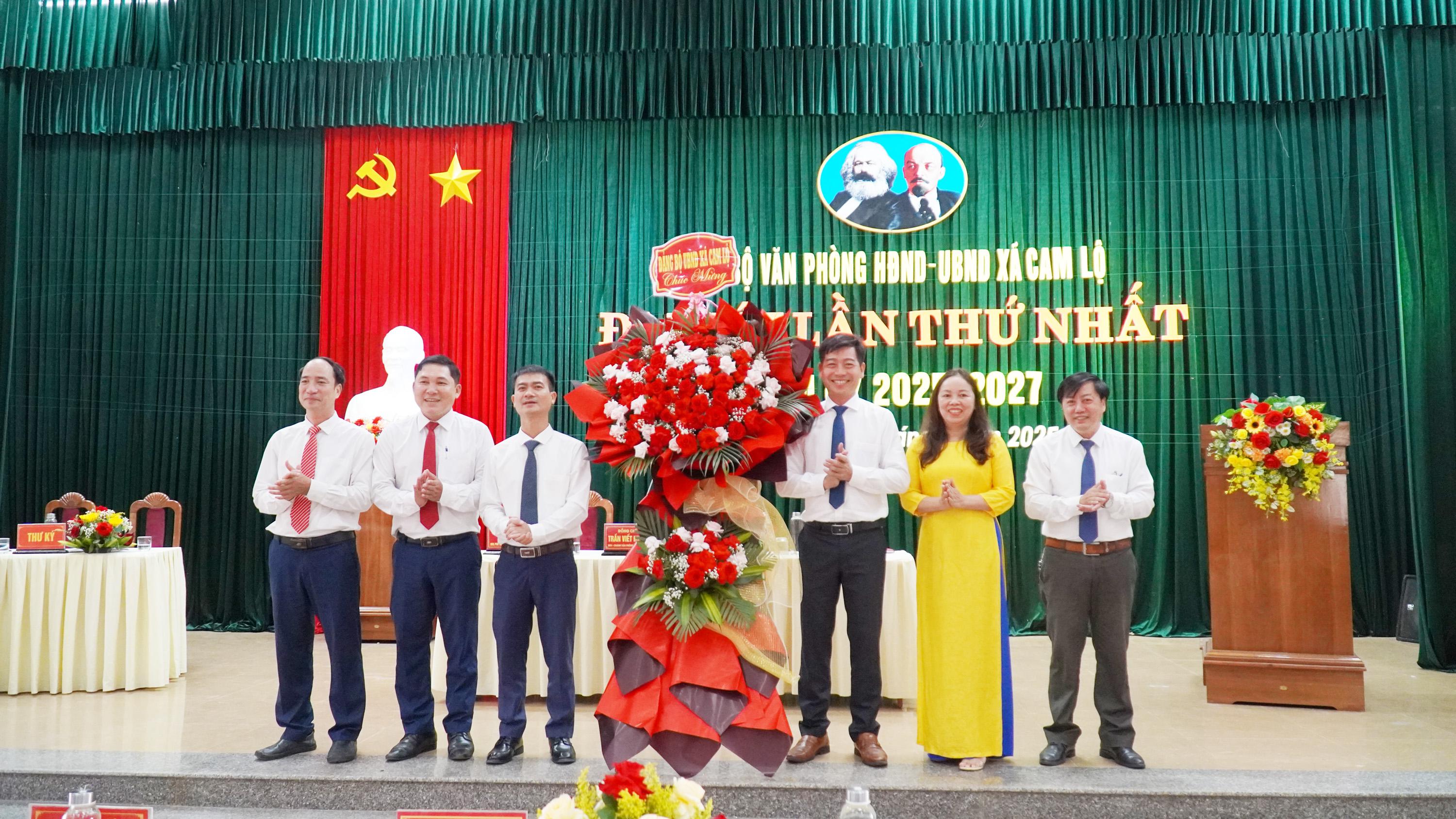 Các đồng chí lãnh đạo xã Cam Lộ tặng hoa chúc mừng Đại hội