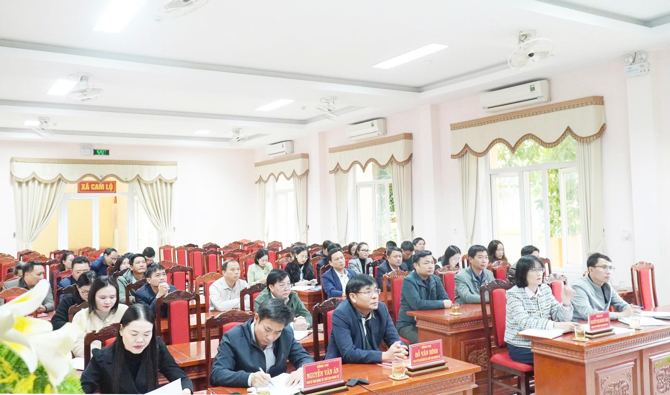 Tham dự hội nghị tại điểm cầu xã Cam Lộ có các đồng chí: Đỗ Văn Bình, TUV, Bí thư Đảng ủy, Chủ tịch HĐND xã; Nguyễn Thị Hoàng Oanh, Phó Bí thư Thường trực Đảng ủy; Nguyễn Văn Ân, Phó Bí thư Đảng ủy, Chủ tịch UBND xã, Dương Thị Thương, UVBTV Đảng ủy, Chủ tịch UBMTTQ Việt Nam xã cùng các đồng chí Ủy viên Ban Thường vụ Đảng ủy, Ban Chấp hành Đảng bộ xã.
