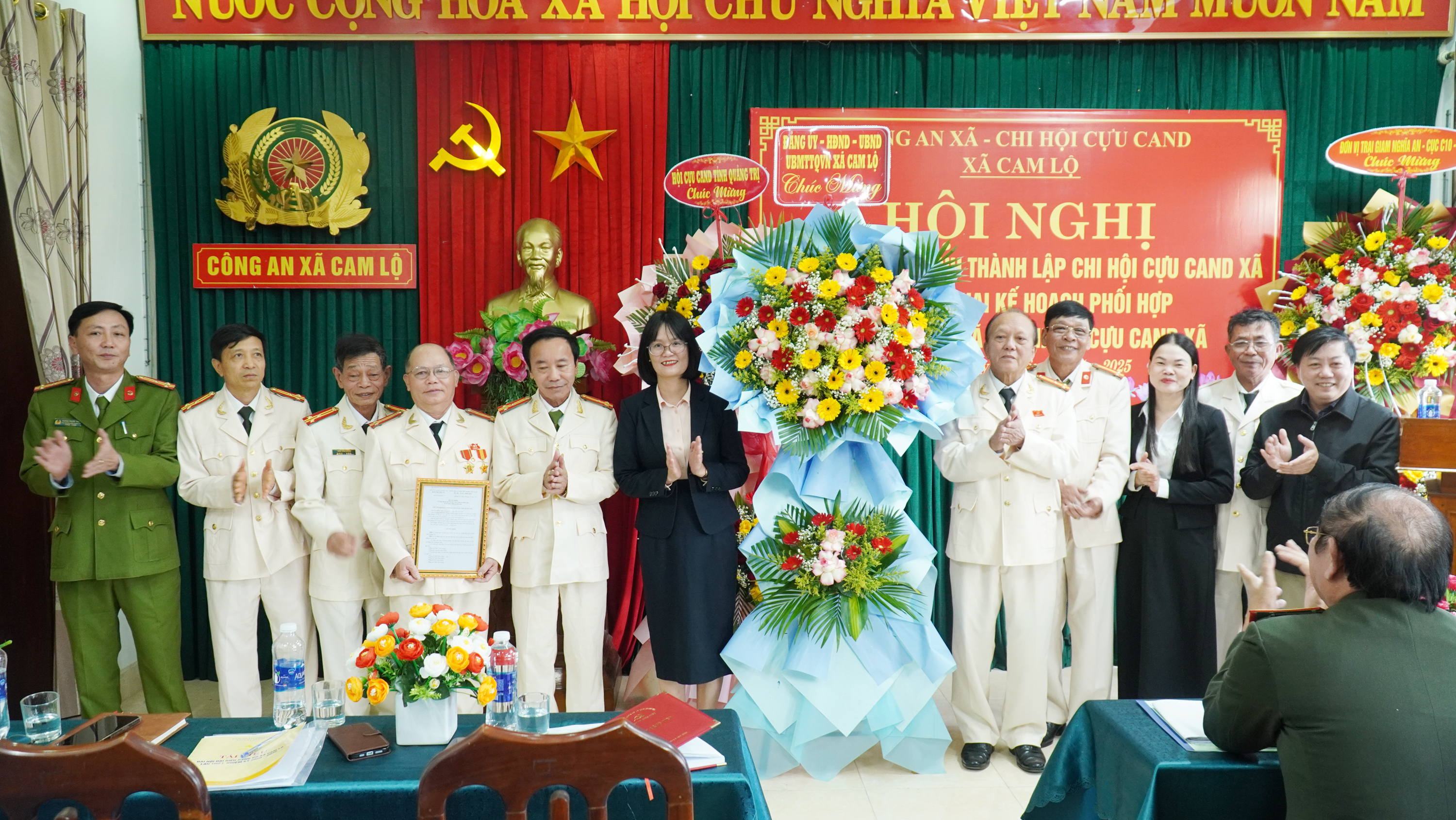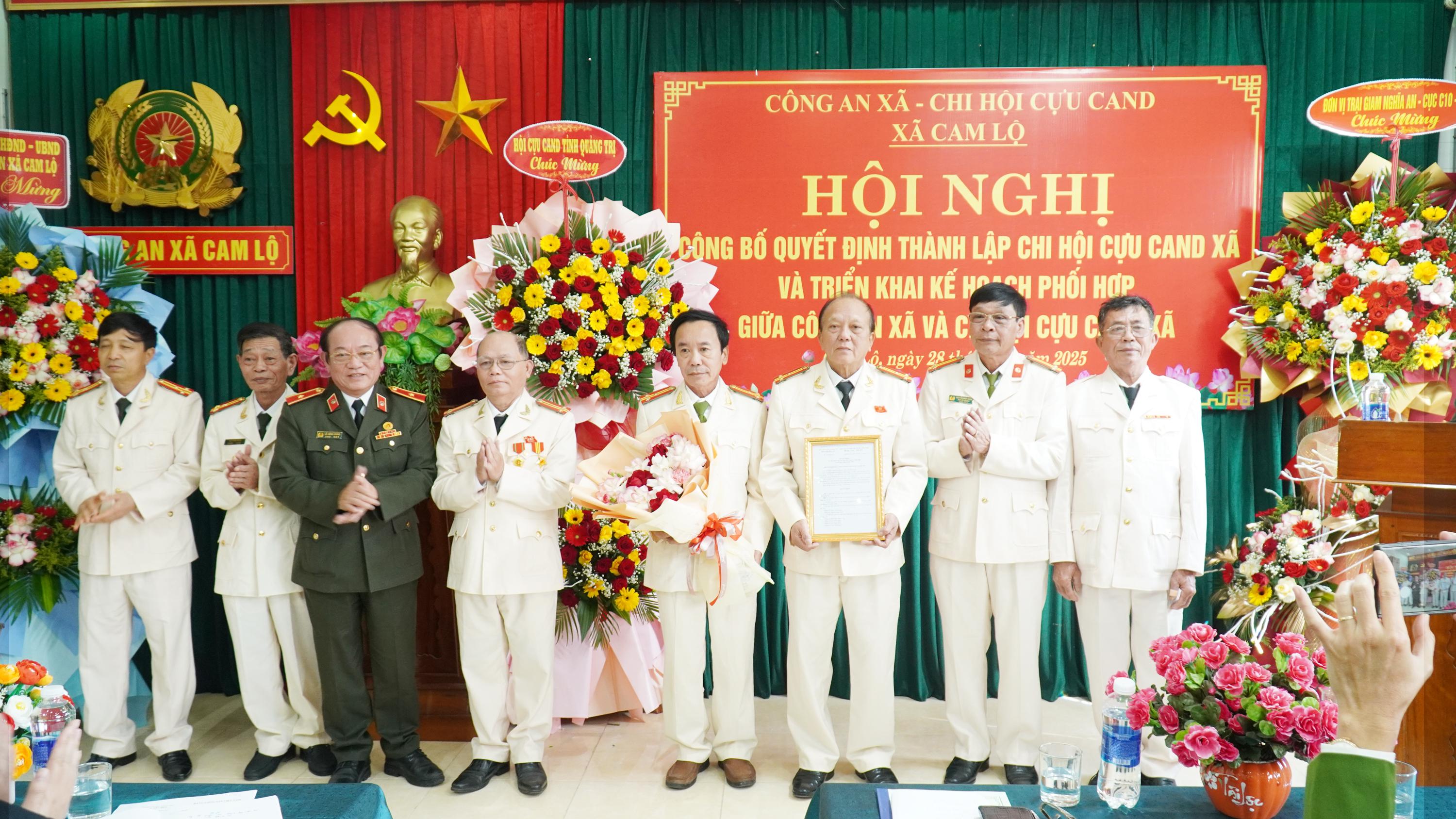 Ngày 28/11/2025, Hội Cựu Công an nhân dân (CAND) tỉnh Quảng Trị tổ chức Lễ Công bố Quyết định thành lập Chi hội Cựu Công an nhân dân xã Cam Lộ. Tham dự buổi lễ có Thiếu tướng Lê Công Dung, Chủ tịch Hội Cựu CAND tỉnh. Về phía địa phương có các đồng chí: Nguyễn Thị Hoàng Oanh, Phó Bí thư Thường trực Đảng ủy; Dương Thị Thương, UVBTV Đảng ủy, Chủ tịch Ủy ban MTTQ Việt Nam xã; và Nguyễn Tiến Long, Phó Chủ tịch UBND xã.