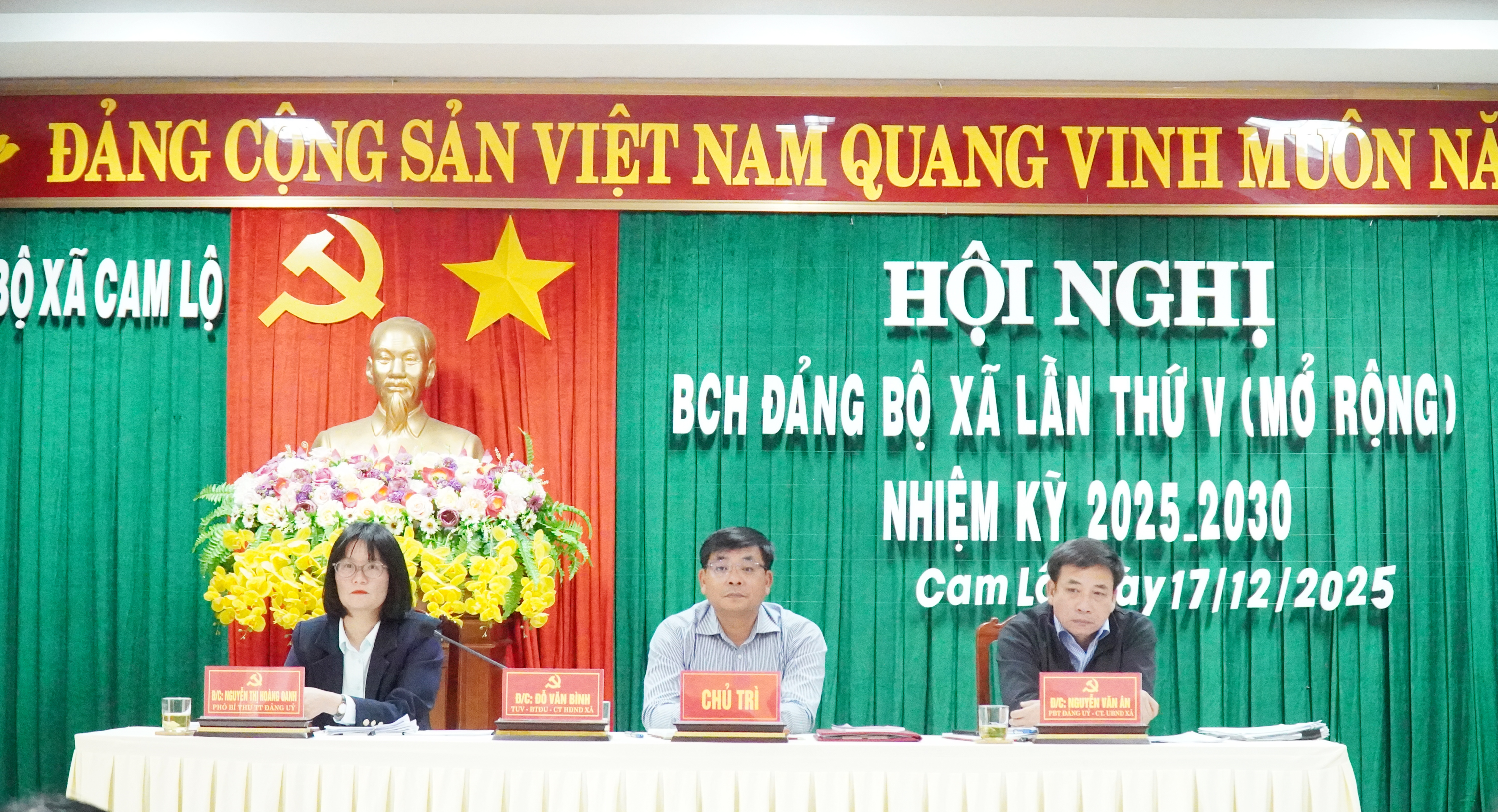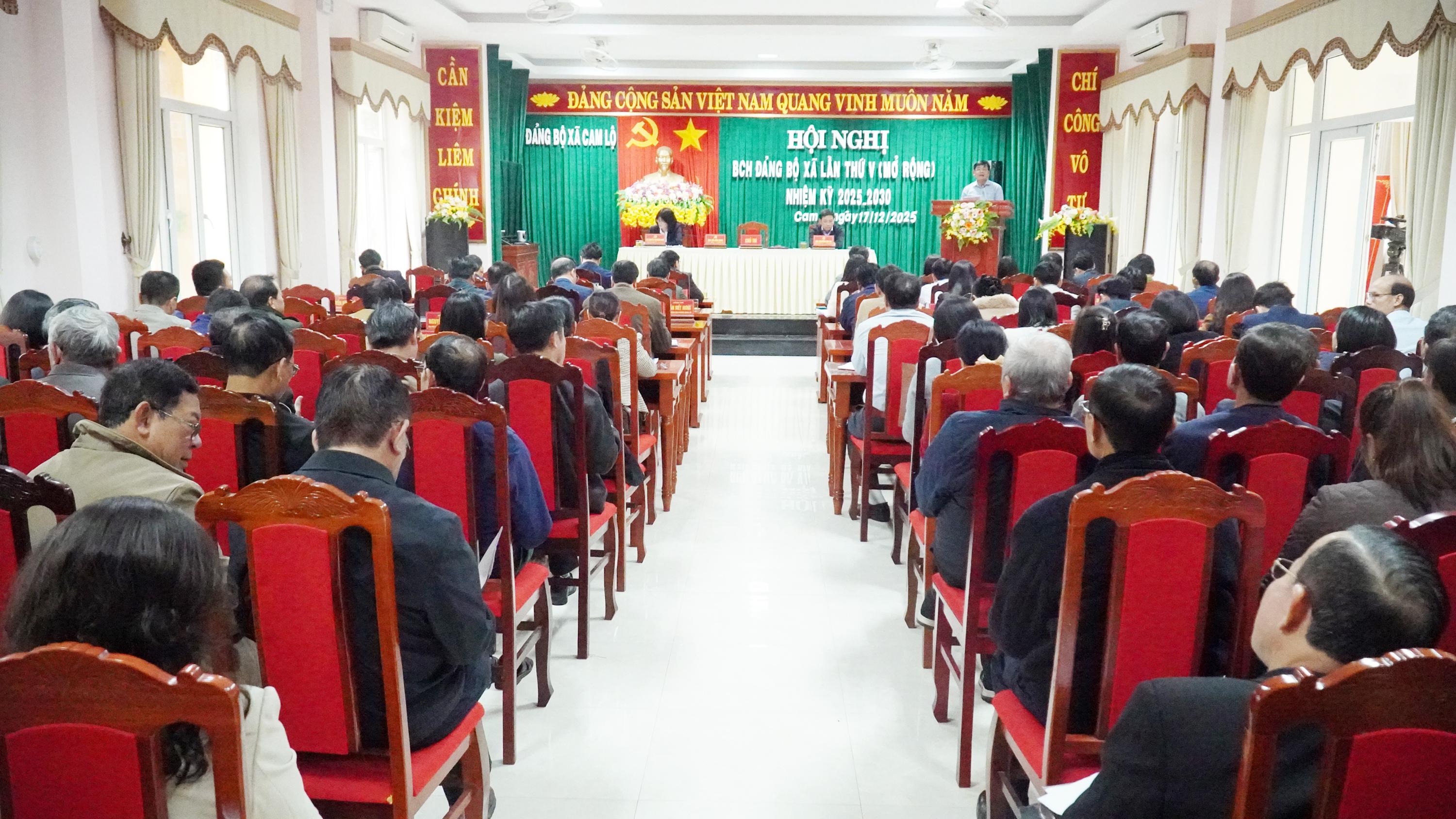 Ngày 17/12, Ban Chấp hành Đảng bộ xã Cam Lộ tổ chức Hội nghị lần thứ V (mở rộng), nhiệm kỳ 2025-2030 nhằm đánh giá toàn diện tình hình thực hiện nhiệm vụ phát triển KT-XH, bảo đảm quốc QP-AN và công tác xây dựng Đảng trong 6 tháng cuối năm 2025; đề ra phương hướng, nhiệm vụ năm 2026. Tham dự có đồng chí Hoàng Quốc Long, Ủy viên Ủy ban Kiểm tra Tỉnh ủy.