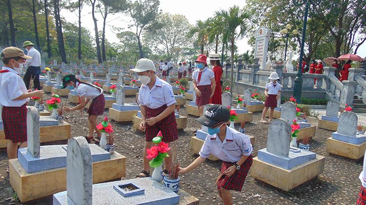 Cán bộ, giáo viên, học sinh Trường Tiểu học Cam Thành viếng Nghĩa trang liệt sĩ Quốc gia Đường 9