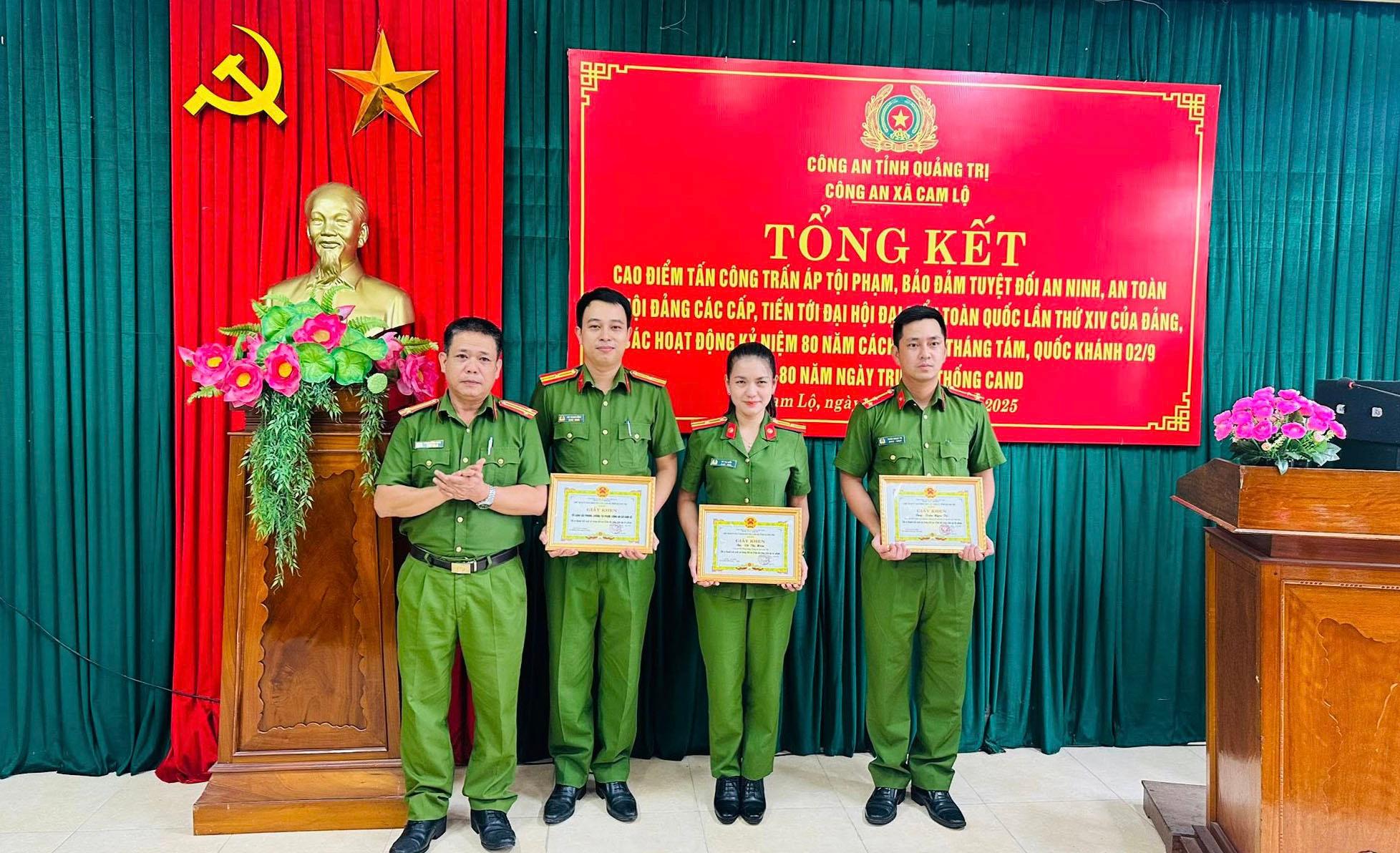 Với những kết quả đã đạt được, Chủ tịch UBND xã Cam Lộ đã tặng giấy khen cho 2 tập thể và 2 cá nhân có thành tích xuất sắc trong đợt ra quân tấn công trấn áp tội phạm vừa qua.