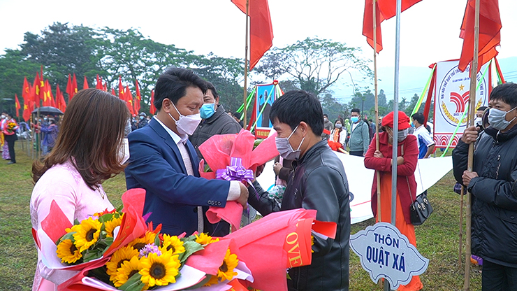 Tặng hoa và cờ lưu niệm cho các đoàn vận động viên
