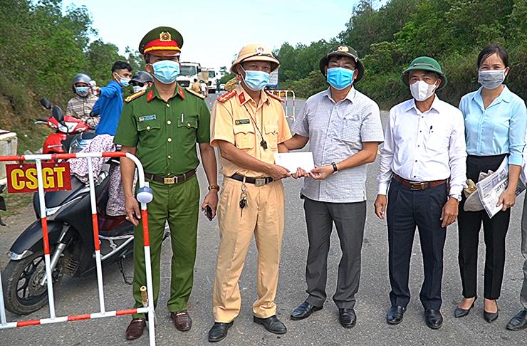 Lãnh đạo huyện tặng quà cho các chốt kiểm tra y tế