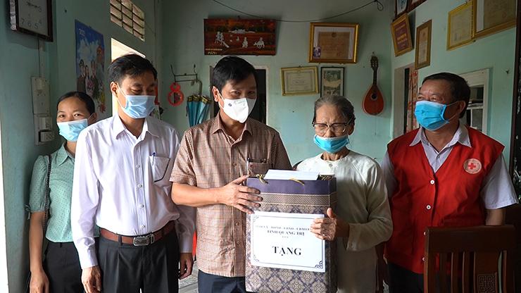 Phó Chủ tịch UBND tỉnh Hoàng Nam trao quà cho bà Nguyễn Thị Huê, thương binh hạng 1/4 ở thôn Bích Giang, xã Cam Hiếu