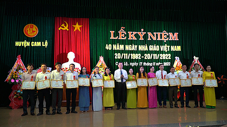 Dịp này, UBND huyện Cam Lộ đã tặng giấy khen cho 16 tập thể và 30 cá nhân có thành tích xuất sắc trong phong trào thi đua chào mừng kỳ niệm 40 năm ngày Nhà giáo Việt Nam.