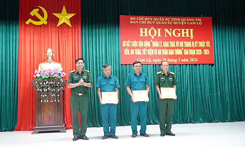 Ban Chỉ huy quân sự huyện Cam Lộ vừa tổ chức sơ kết 5 năm thực hiện Cuộc vận động 50 về “Quản lý, khai thác vũ khí thiết bị tốt, bền, an toàn, tiết kiệm và an toàn giao thông”, giai đoạn 2020-2024.