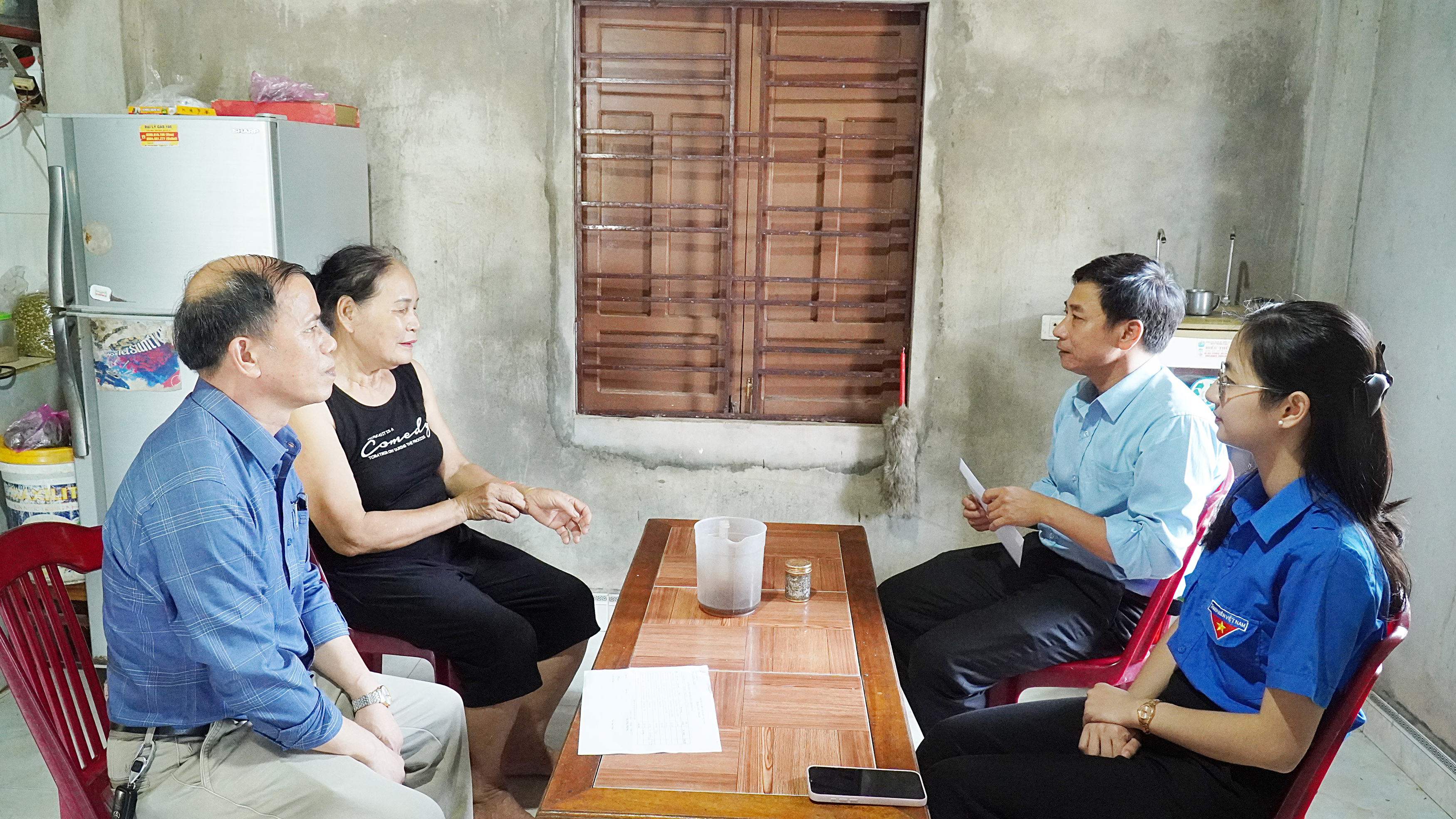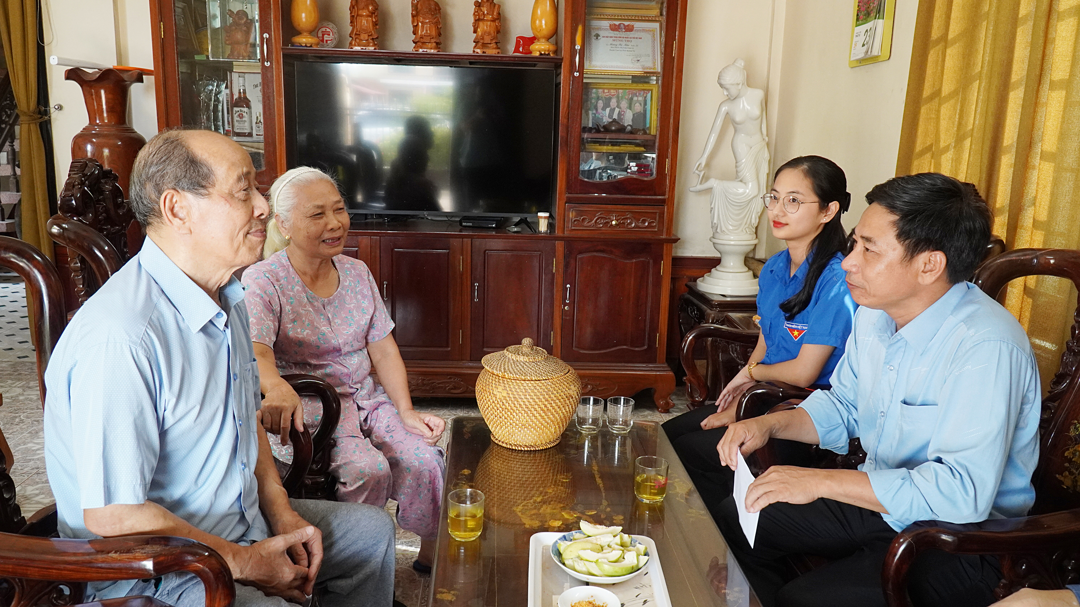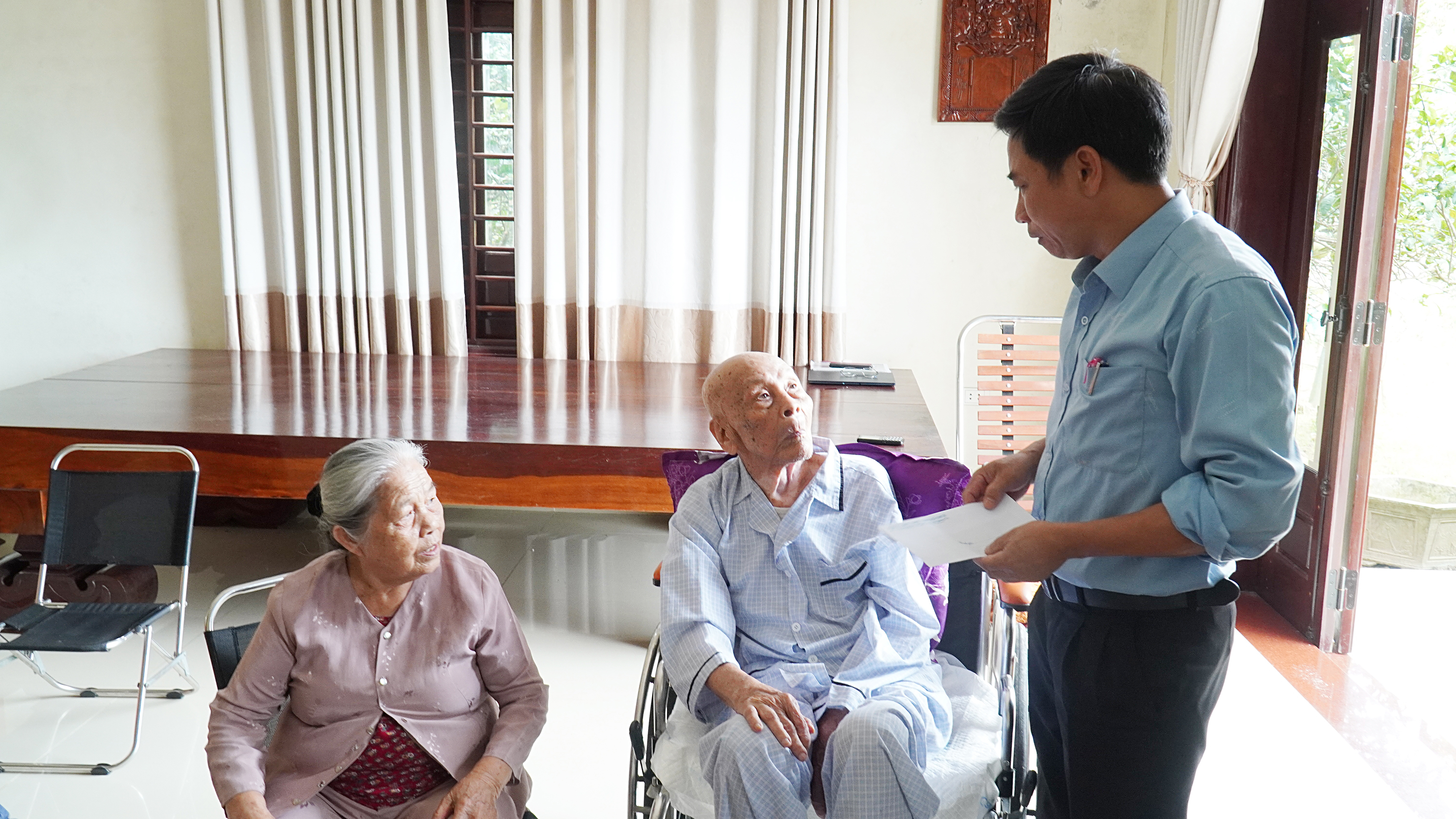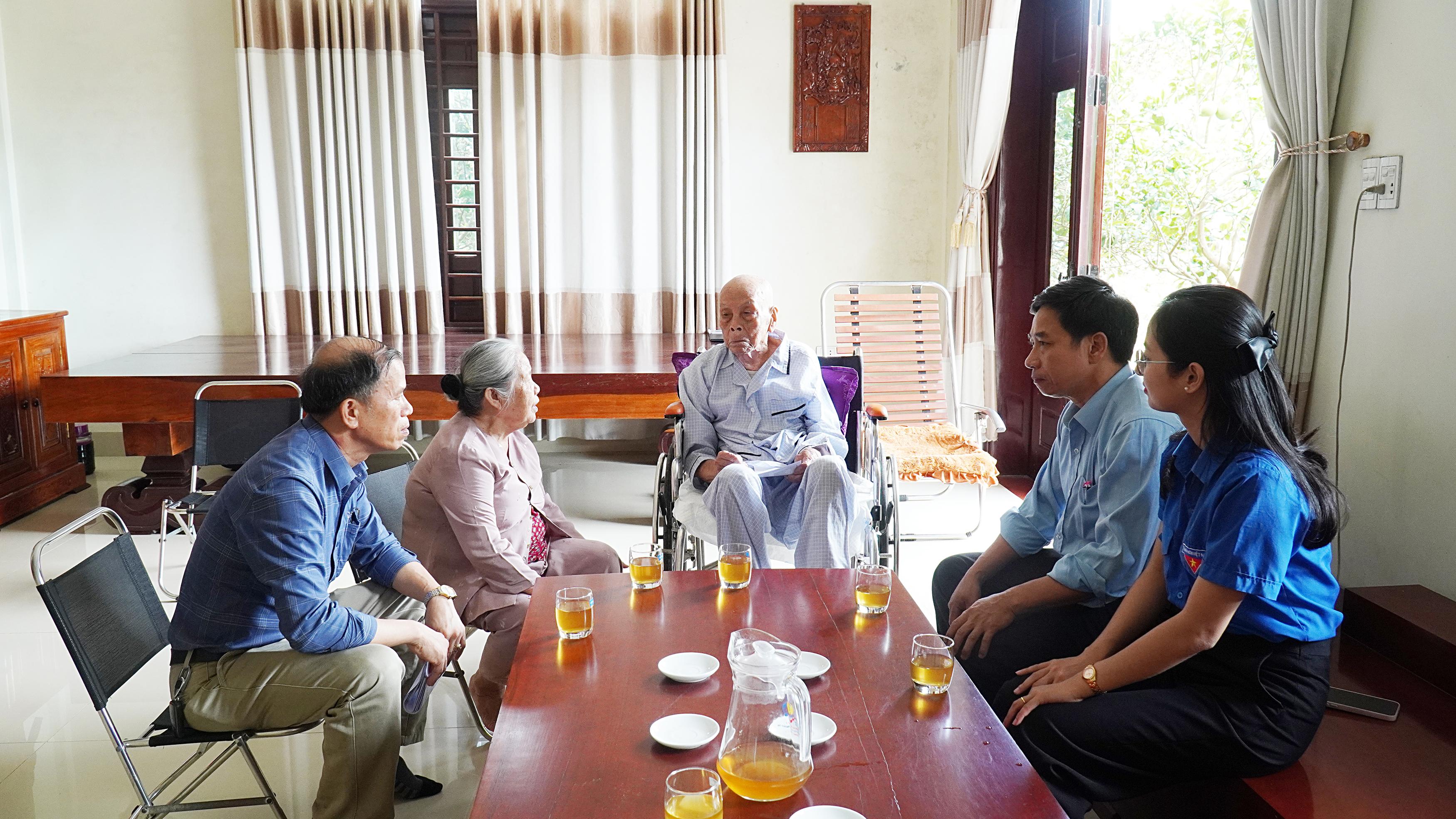 Chủ tịch UBND xã Nguyễn Văn Ân thăm hỏi, động viên sức khỏe gia đình ông Nguyễn Tiến Giang, thương binh, cán bộ tiền khởi nghĩa ở Khu phố 8