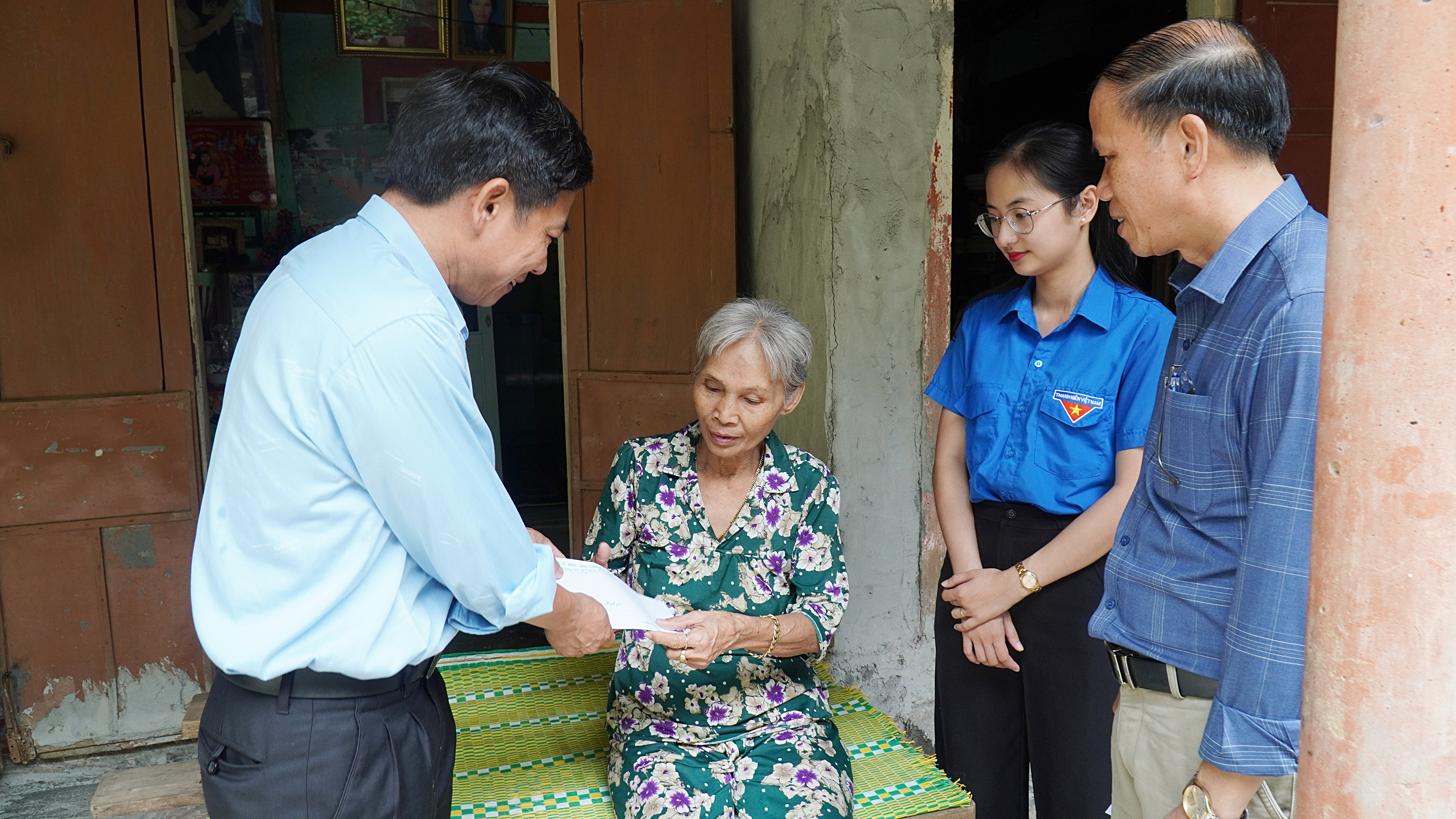 Chủ tịch UBND xã Nguyễn Văn Ân đã đến thăm và trao quà cho ông Nguyễn Tiến Giang, thương binh, cán bộ tiền khởi nghĩa; bà Tạ Thị Hồng Phấn, thương binh ở Khu phố 8; ông Nguyễn Quốc Trị, bà Hoàng Thị Muội đều là người hoạt động kháng chiến bị nhiễm chất độc hóa học, ở Khu phố 3; bà Nguyễn Thị Ánh, con liệt sỹ ở Khu phố 4; bà Lê Thị Mỹ Lợi, thương binh, ở Khu phố 5; bà Võ Thị Xoa, bị nhiễm chất độc hóa học, ở Khu phố 7.