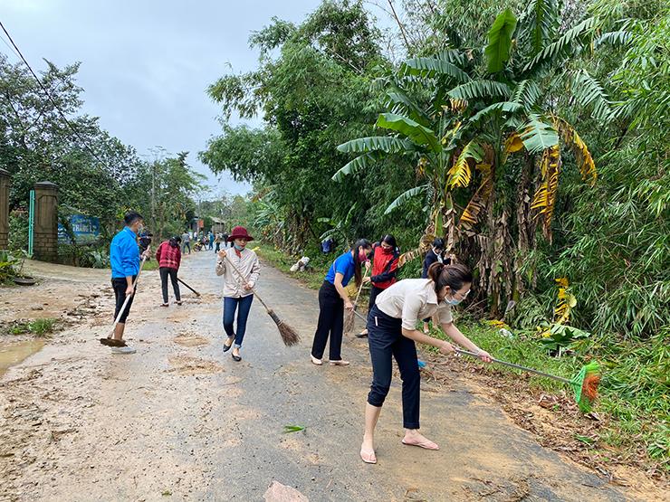 Đoàn viên thanh niên đã tích cực phối hợp với các cơ quan, ban ngành, đoàn thể và nhân dân địa phương ra quân đồng loạt triển khai, thực hiện các công trình, phần việc thiết thực như: chỉnh trang, dọn dẹp các tuyến đường liên thôn; làm vệ sinh các Trung tâm học tập cộng đồng; hỗ trợ nhân dân vệ sinh nhà cửa, chuồng trại, trong đó đặc biệt quan tâm hỗ trợ người yếu thế, gia đình các Cựu TNXP, người già, neo đơn; khơi thông cống rãnh, xử lý nguồn nước phòng chống dịch bệnh; thu gom rác, phát quang bụi rậm; trồng hoa tại các khu dân cư; sửa chữa công trình ánh sáng đường quê bị hư hại do ảnh hưởng của bão lũ...